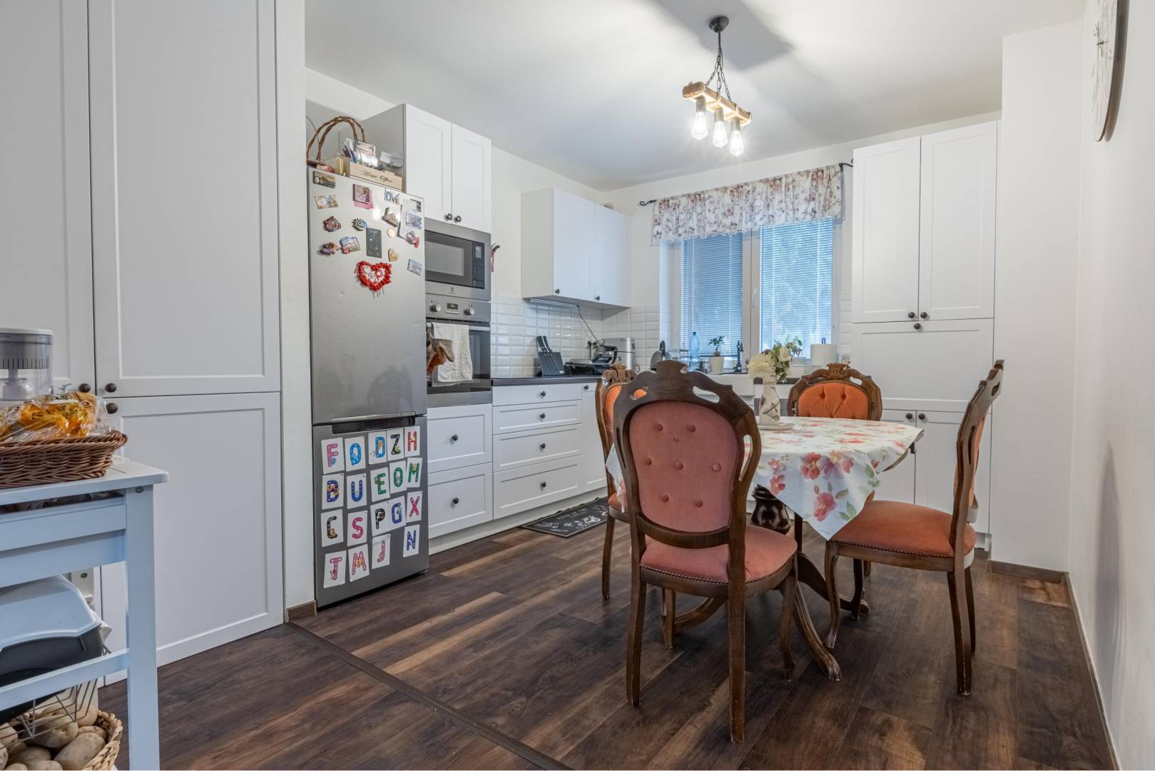 A-W REAL z poverenia majiteľa nehnuteľnosti ponúka na predaj 5 izbový radový rodinný dom s 2 garážou. Nehnuteľnosť je bez podpivničenia s dvomi nadzemnými podlažiami s obytným podkrovím, bol daný do užívania v roku 1998. V roku 2021 bola uskutočnená čiastočná rekonštrukcia v objekte boli vymenené okná, dvere, nášľapné vrstvy podláh obytných miestnosti, miestnosť WC na prízemí a kuchynská linka so spotrebičmi.