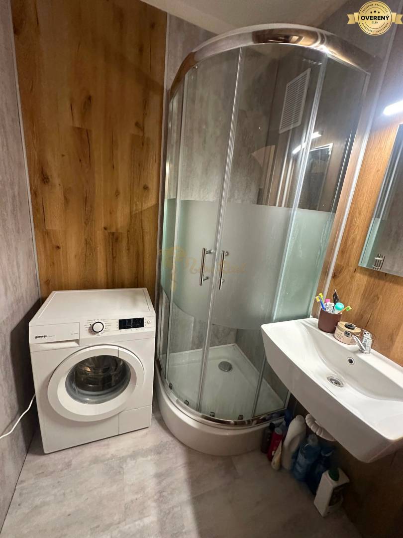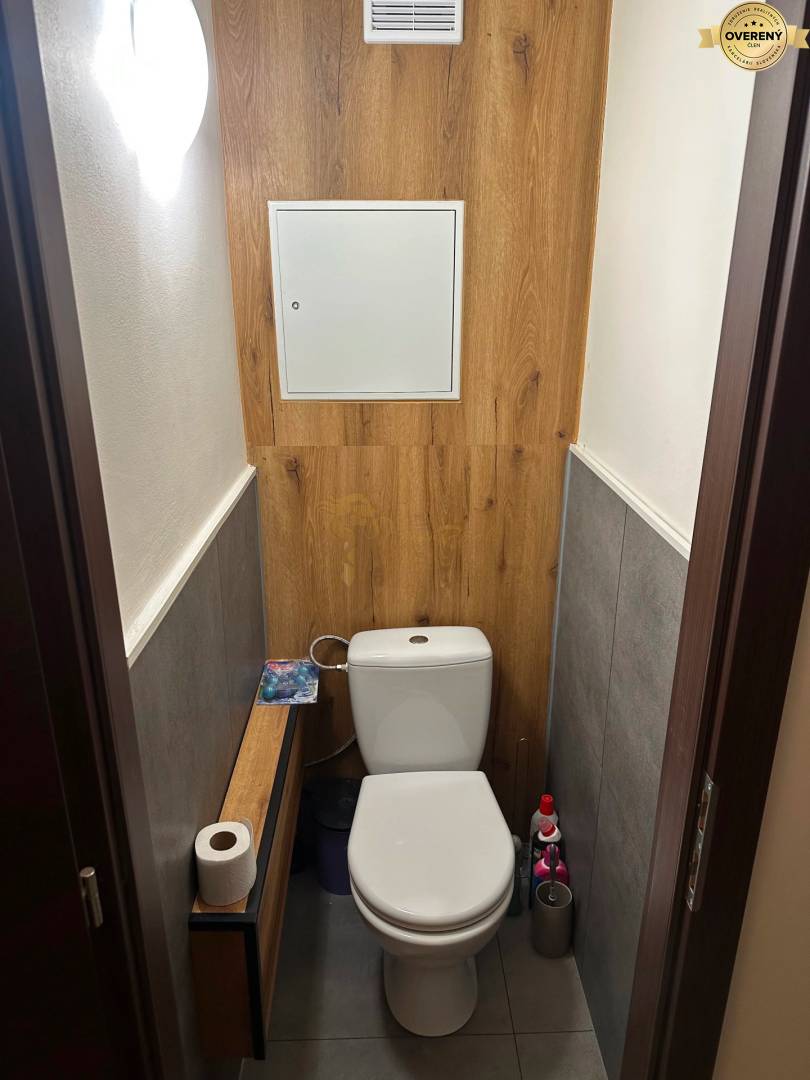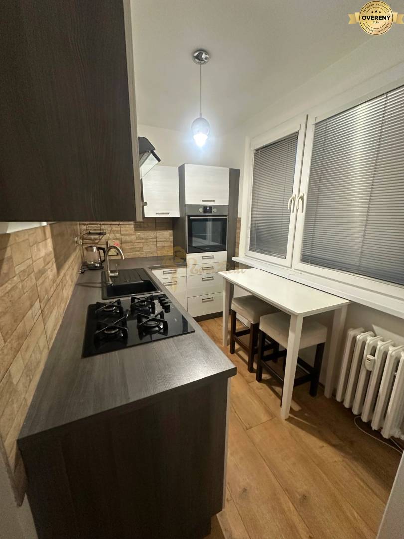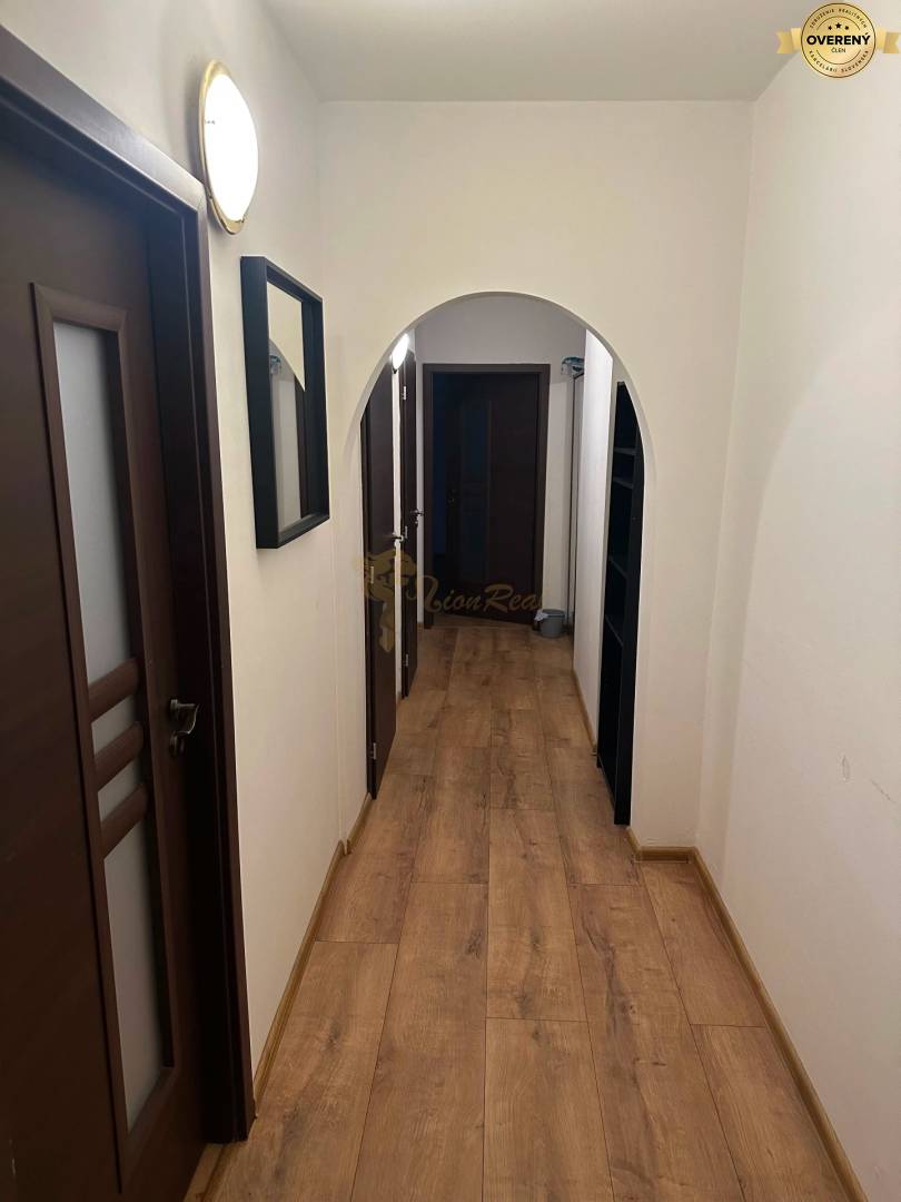 Byt je po čiastočnej rekonštrukcii: Vstupné dvere sú bezpečnostné. Okná sú plastové v celom byte, vybavené vnútornými žalúziami, plastovými vnútornými parapetmi. Vnútorné povrchové úpravy bytu - steny sú vápenné štukové. Nášlapná vrstva podlahy v izbách, kuchyni a chodbe je plávajúca, v kúpeľni a WC a keramická dlažba. Bytové jadro je vymurované. V kúpeľni je osadená sprcha a keramické umývadlo. Batérie sú pákové. Obklad stien v kúpeľni keramickým -vinylovým obkladom, podlaha keramická-vinyl. dlažba. Kuchynská linka, drez typu blanco, batéria páková, sporák plynový, digestor, elektrická rúra, a umývačka riadu, obklad steny za linkou keramický obklad. Vykurovanie bytu je ústredné teplovodné s diaľkovou dodávkou tepla, radiátory KORADO.