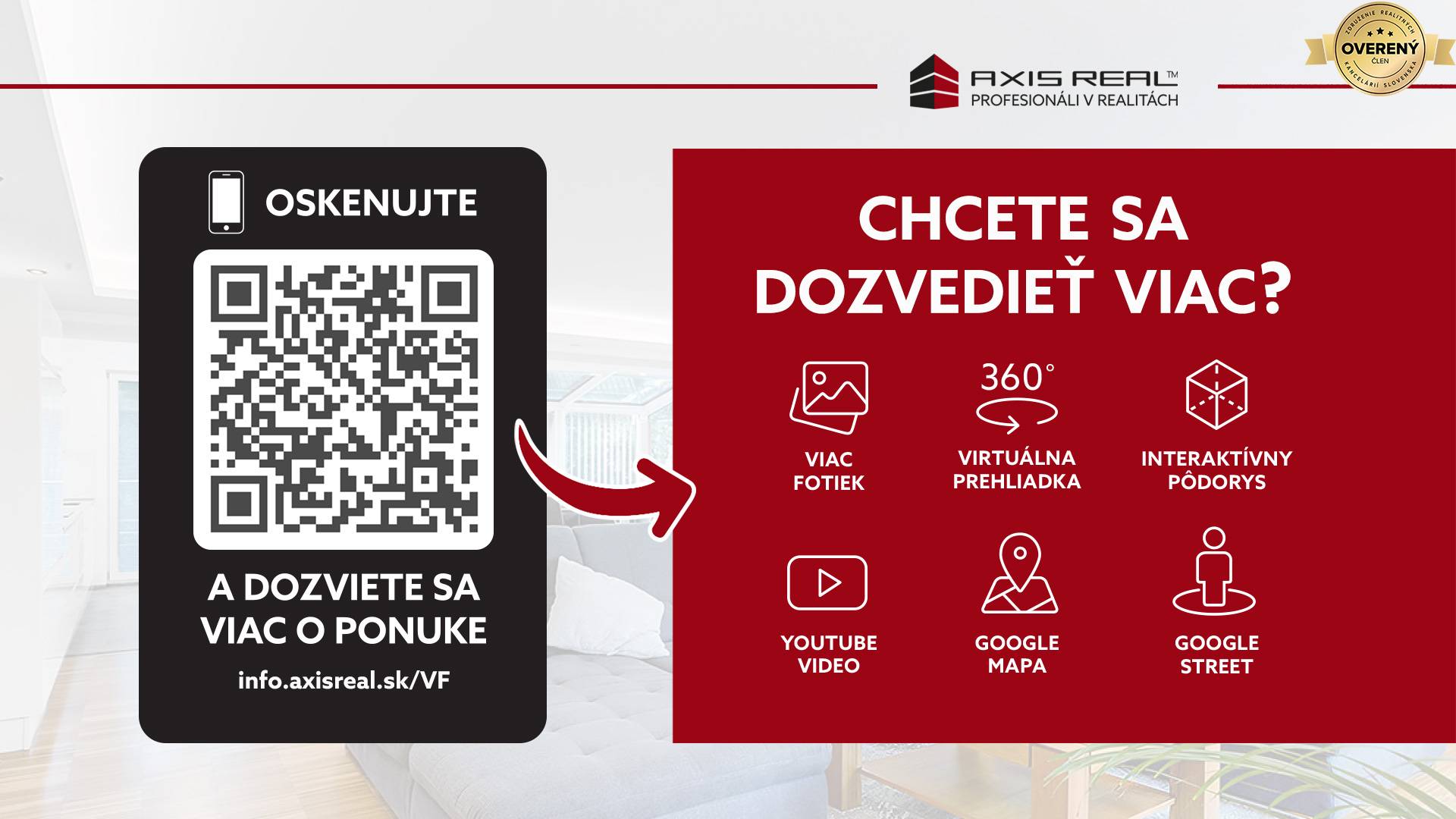 360° VIRTUÁLNU PREHLIADKU A 3D PÔDORYS NEHNUTEĽNOSTI NÁJDETE NA: https://info.axisreal.sk/VF
