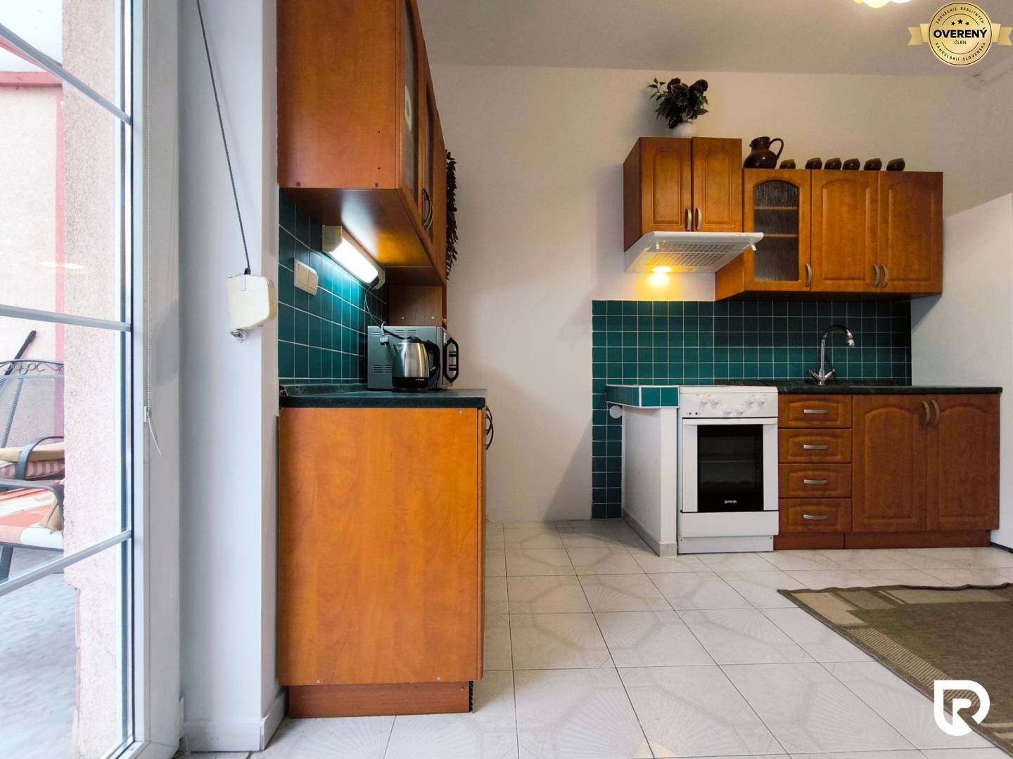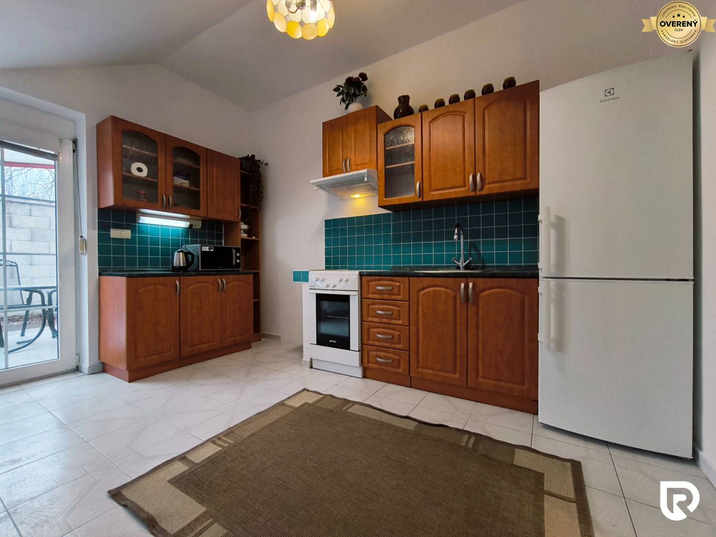 Kuchyňa je prakticky zariadená spotrebičmi – elektrická rúra, mikrovlnná rúra, chladnička s mrazničkou – doplnená o jedálenský kút a výstup na spoločnú terasu, ktorá prirodzene rozširuje obytný priestor.