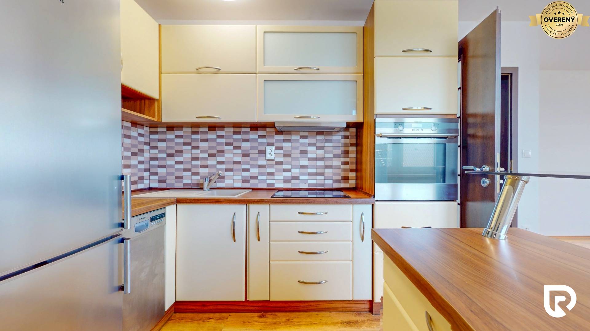 Kuchyňa je inteligentne navrhnutá na maximalizáciu priestoru a je vybavená chladničkou a mrazničkou, indukčnou varnou platňou a prípravou na vstavanú mikrovlnku. Súčasťou je aj vstavaná umývačka riadu, ktorú však bude potrebné vymeniť, a tak si môžeš vybrať značku, ktorá ti vyhovuje.