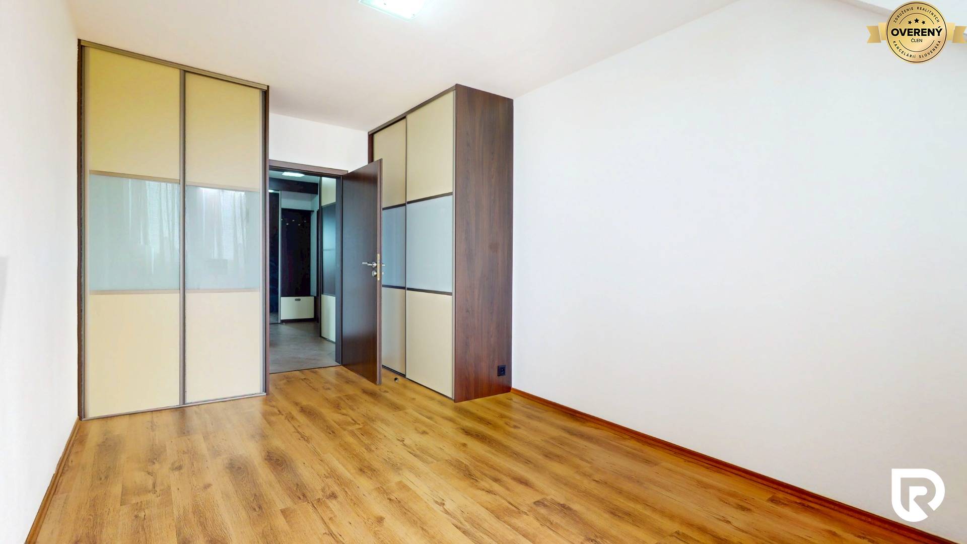 Po vstupe do bytu ťa privíta priestranná chodba s dvomi rolldormi, ktoré ponúkajú množstvo úložného priestoru. Z chodby sa dostaneš do spálne, ktorá má tiež dve vstavané skrine a priamy prístup na balkón orientovaný na západ – ideálne miesto na oddych po práci.