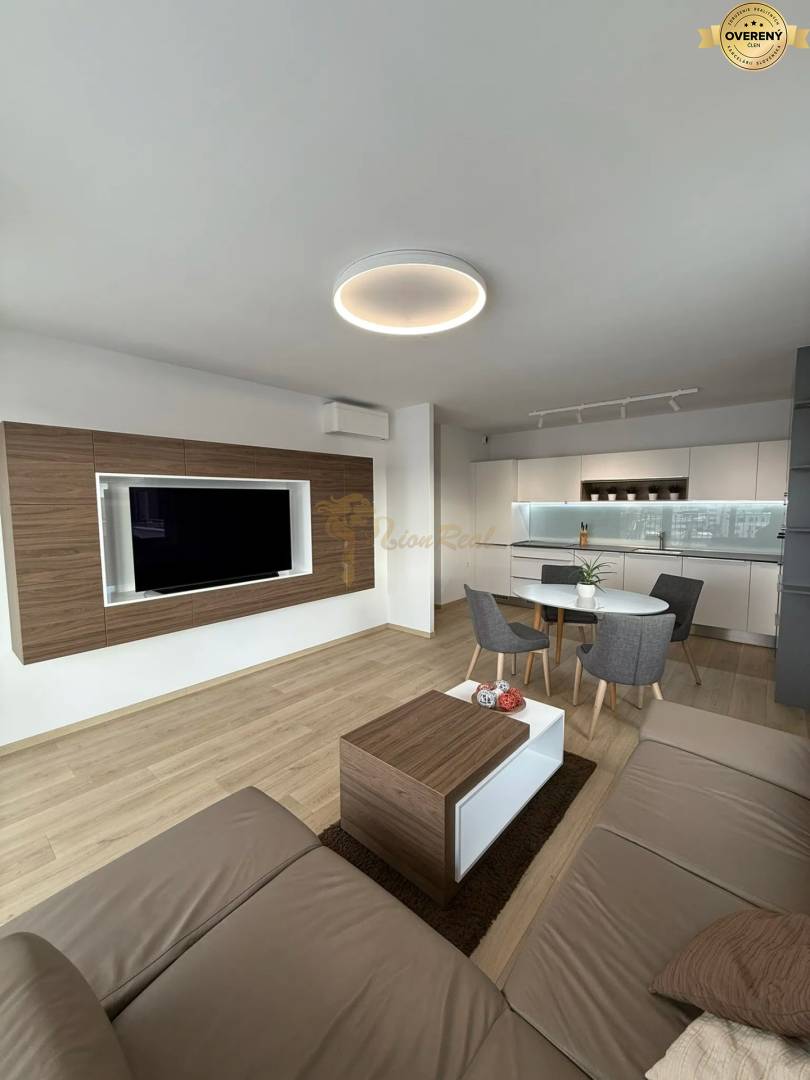 Ide o byt s celkovou rozlohou 83,52 m2, z čoho podlahová výmera bytovej jednotky je 74,69 m2 + balkón o výmere 8.83 m2. Byt je k dispozícií kompletne zariadený v vysokom štandarde s nábytkom na mieru vo všetkých miestnostiach a kvalitnými spotrebičmi. K bytu je potrebné dokúpiť dve vnútorné parkovacie miesta s elektrickou prípojkou (230V) za cenu 40.000€.