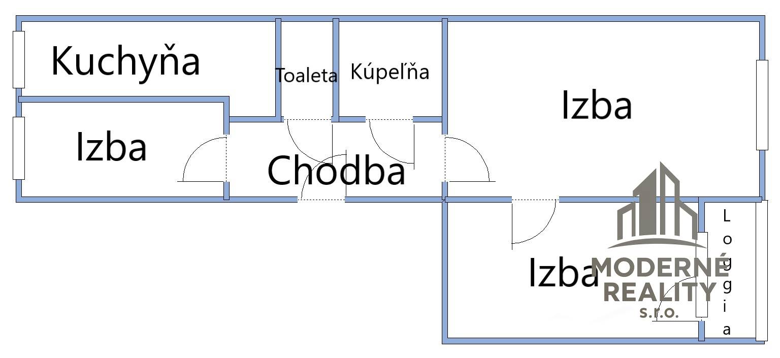 3-izbový byt s loggiou na sídlisku JUH, Nové Zámky – 61, 37m2