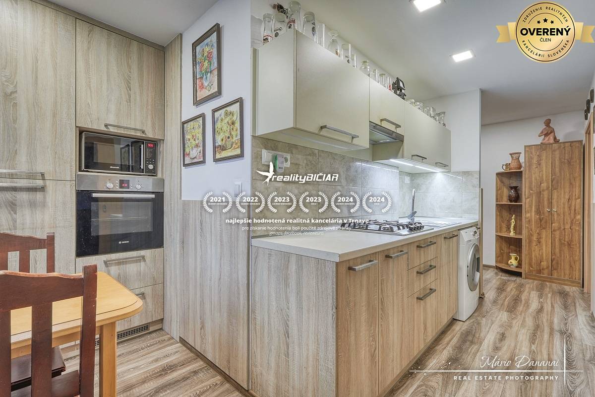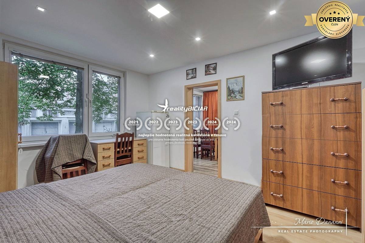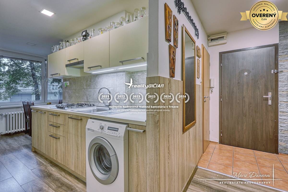 Predstavujeme vám svetlý a príjemne pôsobiaci 3-izbový byt s rozlohou 65 m², ktorý sa nachádza na vyvýšenom prízemí bytového domu v tichej lokalite. Byt prešiel čiastočnou rekonštrukciou a zaujme vás premyslenou dispozíciou. Zo vstupnej chodby sa vchádza do modernej kuchyne s jedálenským kútom, kúpeľne s vaňou, sprchovacím kútom a toaletou, a troch samostatných, neprechodných izieb. Obývacia aj hosťovská izba sú vybavené vstavanými skriňami, ktoré ponúkajú dostatok úložného priestoru. Kuchynská linka je prakticky riešená a vybavená spotrebičmi – plynová varná doska, digestor, elektrická a mikrovlnná rúra, pračka. V byte sa nachádzajú laminátové podlahy a dlažba, nové interiérové dvere so zárubňami a bezpečnostné vstupné dvere. K bytu prislúcha pivnica (1 m²) a uzamykateľný plechový box vo vchode, ideálny na bicykel alebo kočík. Parkovanie je bezproblémové priamo pri bytovom dome. Byt sa predáva so zariadením, takže noví majitelia môžu okamžite bývať bez ďalších investícií.