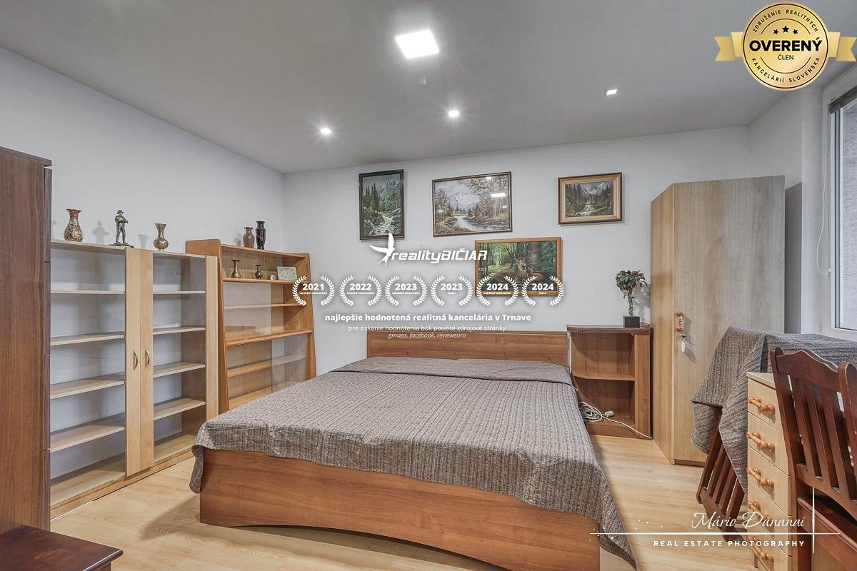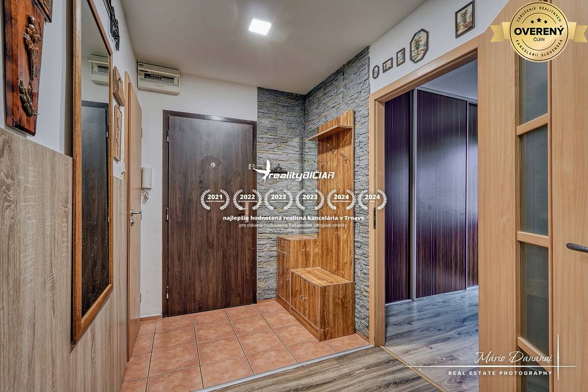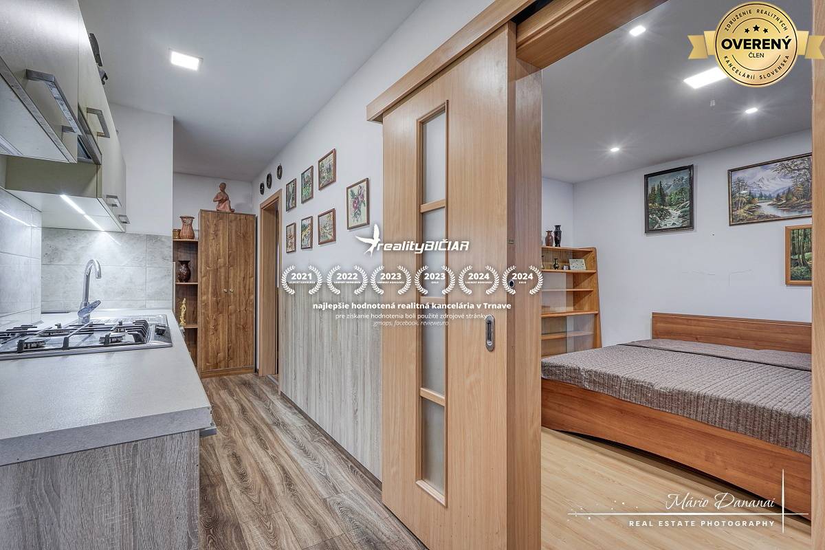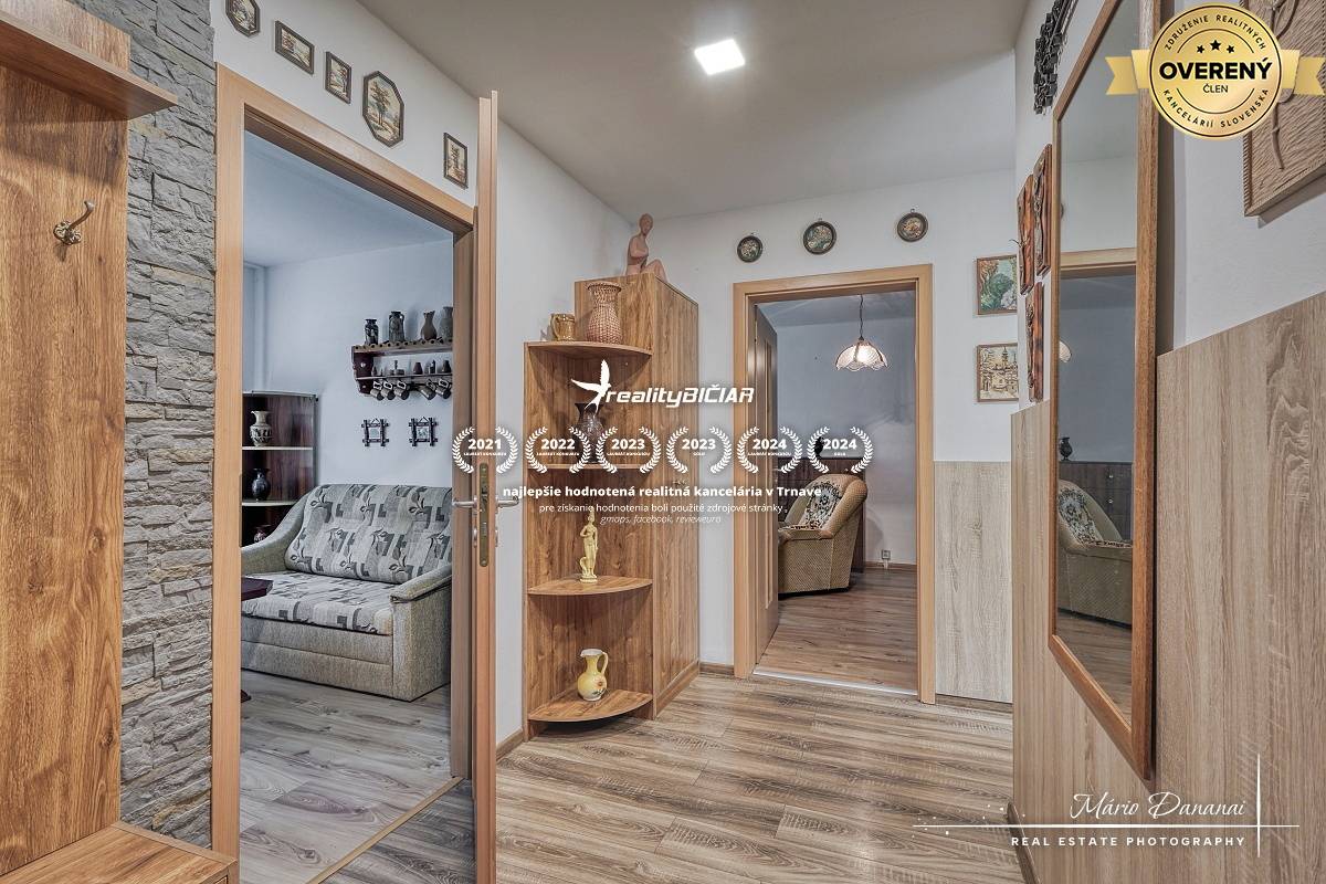 Predstavujeme vám svetlý a príjemne pôsobiaci 3-izbový byt s rozlohou 65 m², ktorý sa nachádza na vyvýšenom prízemí bytového domu v tichej lokalite. Byt prešiel čiastočnou rekonštrukciou a zaujme vás premyslenou dispozíciou. Zo vstupnej chodby sa vchádza do modernej kuchyne s jedálenským kútom, kúpeľne s vaňou, sprchovacím kútom a toaletou, a troch samostatných, neprechodných izieb. Obývacia aj hosťovská izba sú vybavené vstavanými skriňami, ktoré ponúkajú dostatok úložného priestoru. Kuchynská linka je prakticky riešená a vybavená spotrebičmi – plynová varná doska, digestor, elektrická a mikrovlnná rúra, pračka. V byte sa nachádzajú laminátové podlahy a dlažba, nové interiérové dvere so zárubňami a bezpečnostné vstupné dvere. K bytu prislúcha pivnica (1 m²) a uzamykateľný plechový box vo vchode, ideálny na bicykel alebo kočík. Parkovanie je bezproblémové priamo pri bytovom dome. Byt sa predáva so zariadením, takže noví majitelia môžu okamžite bývať bez ďalších investícií.