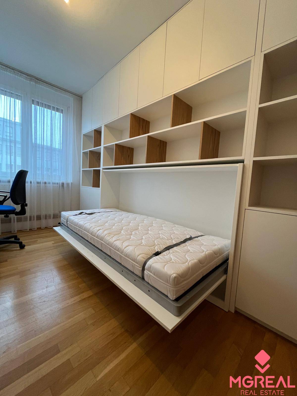 Plocha: úžitková 85m2 + zabezpečená murovaná pivnica v suteréne. Denná časť bytu pozostáva z obývačky a kuchyne, ktoré sú čiastočne prepojené. Byt má priestrannú loggiu orientovanú na slepú ulicu na V s výstupom z obývačky aj jedálne. Spálňa s manželskou posteľou, spálňovú skriňou. Tretia izba je pripravená na univerzálne použitie (pracovňa, detská izba, hosťovská izba) a je zariadená novým nábytkom s vyklápacou posteľou. Tieto izby sú orientované do tichej časti ulice. V byte sa nachádza samostatná miestnosť - šatník/komora. Vybavenie kúpeľne: klasická vaňa, sprchový kút, práčka, okno v kúpeľni. Vybavenie kuchyne: kuchynská linka vrátane vstavaných spotrebičov, jedáleň.
