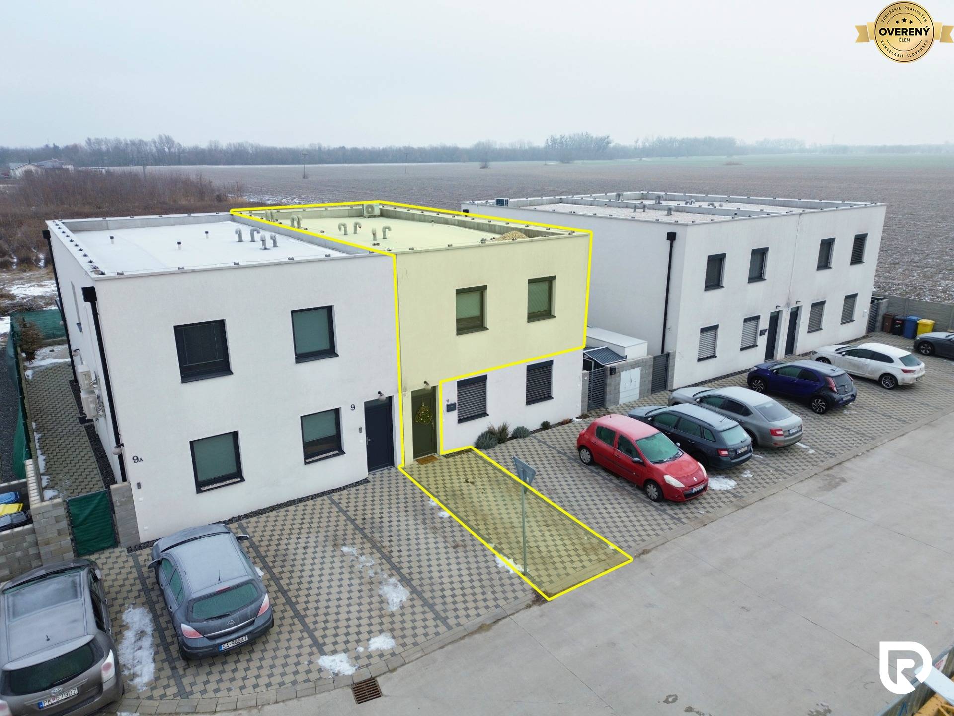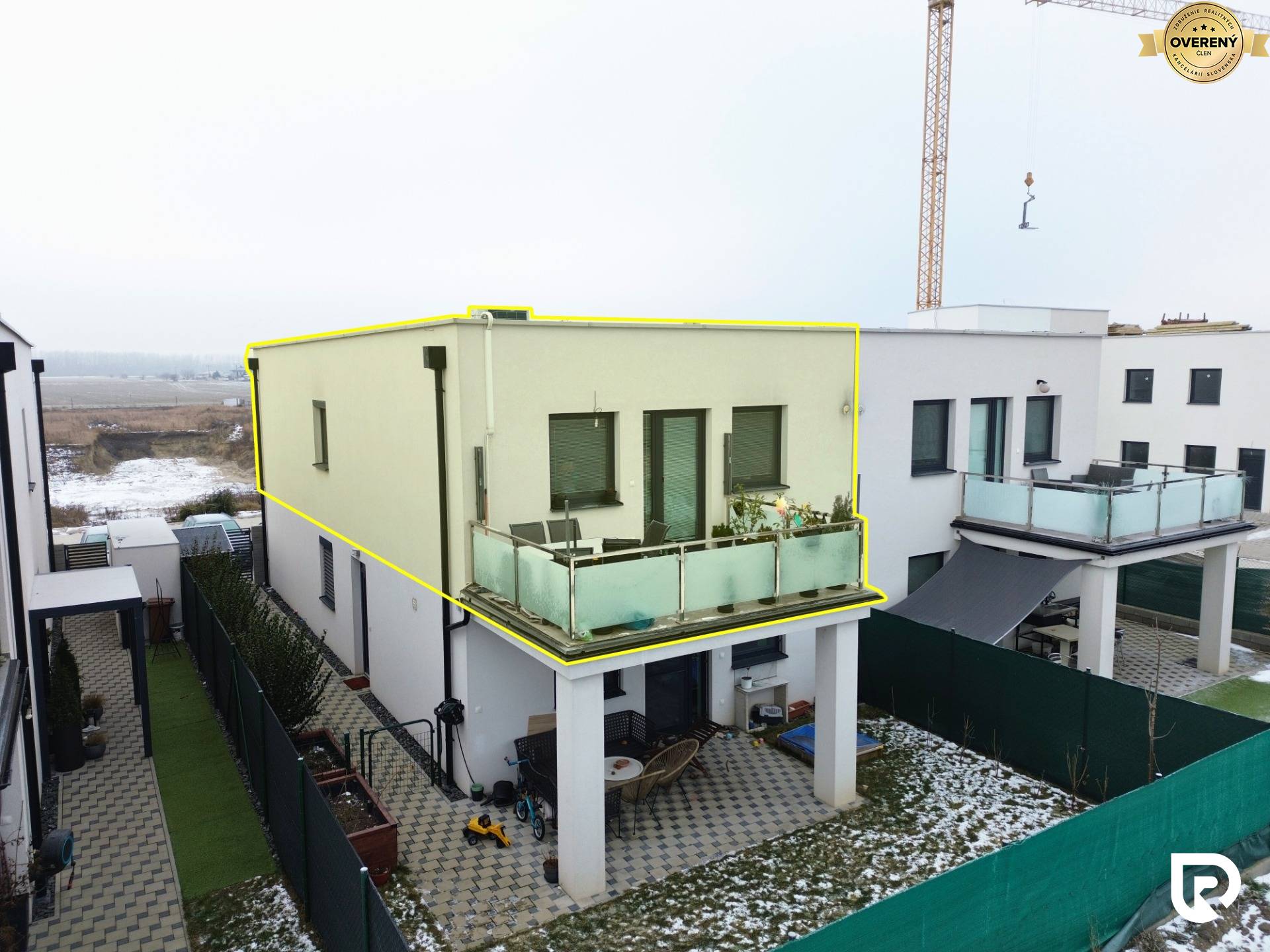 Byt má celkovú výmeru 106 m², z čoho 92 m² tvorí úžitková plocha bytu a 14 m² priestranná terasa, ideálna na relax či posedenie s rodinou. Nachádza sa na poschodí dvojpodlažnej stavby, kde na prízemí býva len jeden sused – mladá, priateľská rodina, čo zaručuje vysoký komfort a súkromie. Stavba je riešená vodorovným rozdelením na dve bytové jednotky, čo vytvára pocit bývania veľmi blízky rodinnému domu, nie klasickému bytovému domu.