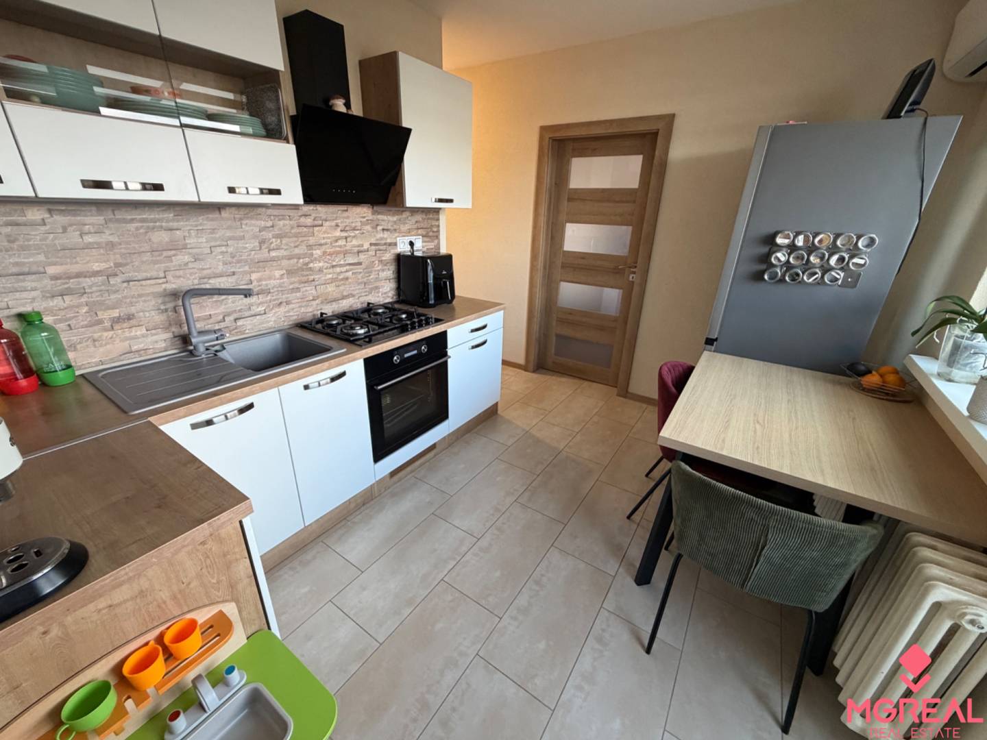 Ponúkame na predaj 4 izbový byt s balkónom v Topoľčanoch na ulici sídlisku východ po kompletnej rekonštrukcii o rozlohe 82 m2 . Nachádza sa na 5. poschodí z 5 v zateplenej bytovke s novým výťahom. Je po rekonštrukcii má rozlohu 82 m2 . Má plastové okná, podlahy má plávajúce a dlažbu v chodbe , kúpeľna jadro je murované nové rozvody , sú tu i nové rozvody elektriny , vody odpad , bolo zväčšené , čím sa zúžila prechodová chodbička , wc je samostatné . Kuchynská linka je nová , je z nej vstup i do špajze . V byte sú i vstavané skrine , byt sa predáva aj zariadený . V suteréne je i latková pivnica . Steny majú stierky . Okná sú plastové. Vybavenie kuchyne: kuchynská linka, sporák .Stav objektu: kompletná rekonštrukcia. Konštrukcia objektu: panelová. Výhody: slnečný, tiché prostredie, škola, škôlka.