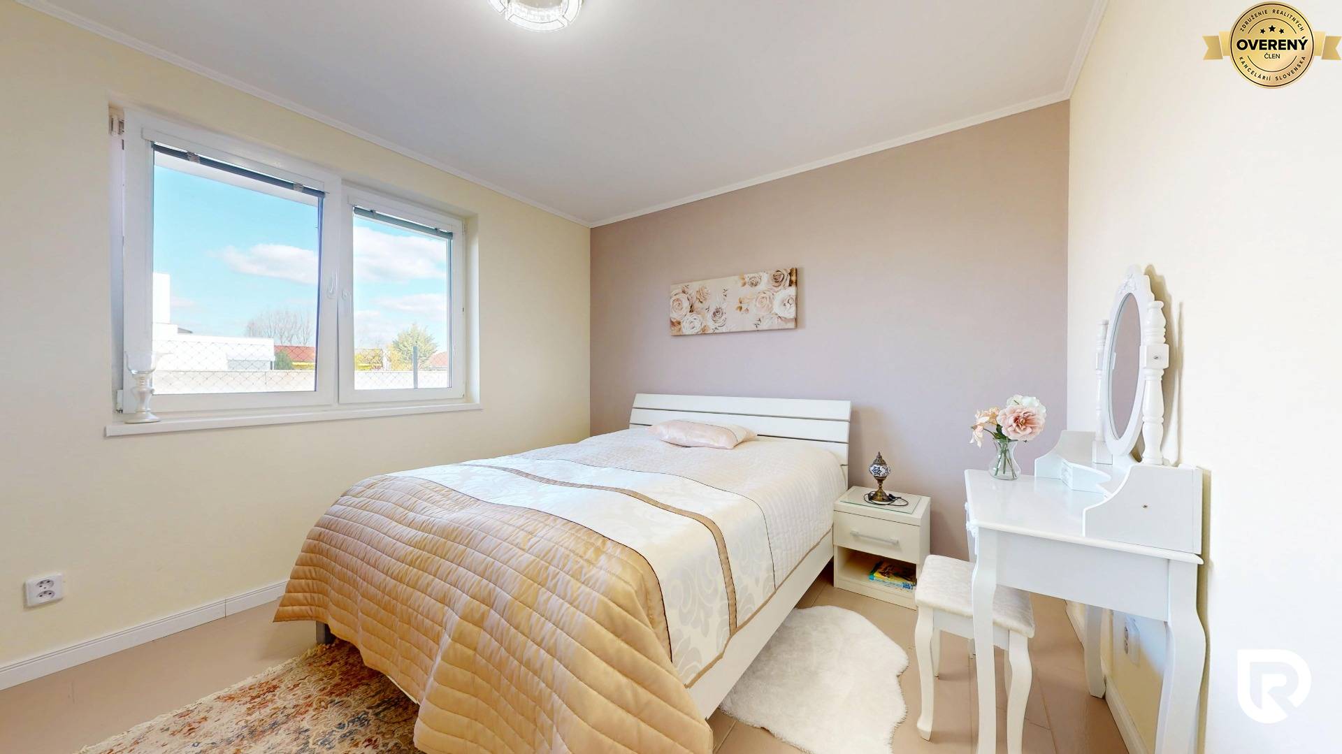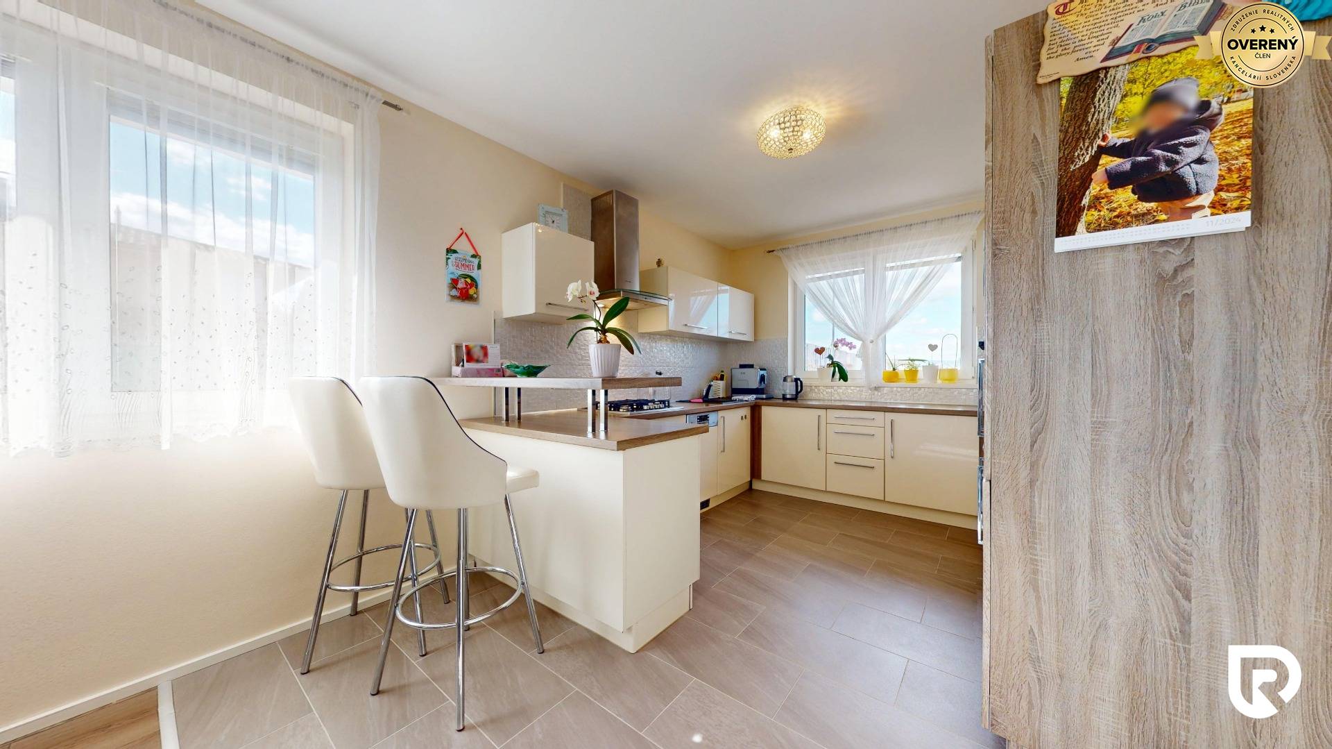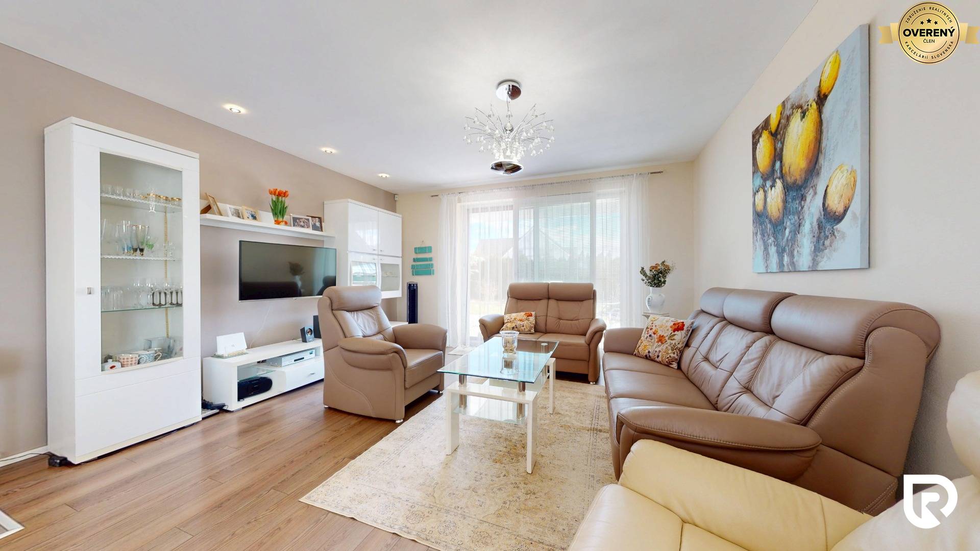 Tento dom je presne ten typ bývania, kde sa ráno zobudíte, otvoríte dvere na terasu a cítite pokoj vlastnej záhrady. Denná časť je krásne presvetlená, vzdušná a prirodzene prepája interiér s exteriérom – obývačka plynulo prechádza na terasu a trávnik, kde si viete predstaviť letné večery, grilovanie alebo deti hrajúce sa na záhrade. Obývacia izba s jedálňou tvorí srdce domu. Je to priestor, kde sa rodina stretáva po práci a škole, kde sa oslavujú narodeniny, kde sa v nedeľu spoločne obeduje. Veľké okná vpúšťajú do interiéru množstvo prirodzeného svetla, čo vytvára pocit pohody a otvorenosti. Kuchyňa je praktická, s barovým sedením – ideálne miesto na rannú kávu alebo rýchle raňajky. Zároveň zostáva prepojená s dianím v obývačke, takže nikdy nie ste „odrezaní“ od rodiny či návštevy. Spálne pôsobia pokojne a útulne. Hlavná spálňa orientovaná do záhrady ponúka súkromie a ticho, ktoré po náročnom dni ocení každý. Ďalšie izby sú ideálne ako detské izby, pracovňa alebo hosťovská izba – dom prirodzene rastie spolu s vašimi potrebami. Záhrada je upravená a udržiavaná s citom. Ponúka dostatok priestoru na oddych, záhradkárčenie aj detské hry. Vďaka rohovému umiestneniu pôsobí pozemok vzdušne a poskytuje príjemný pocit súkromia.