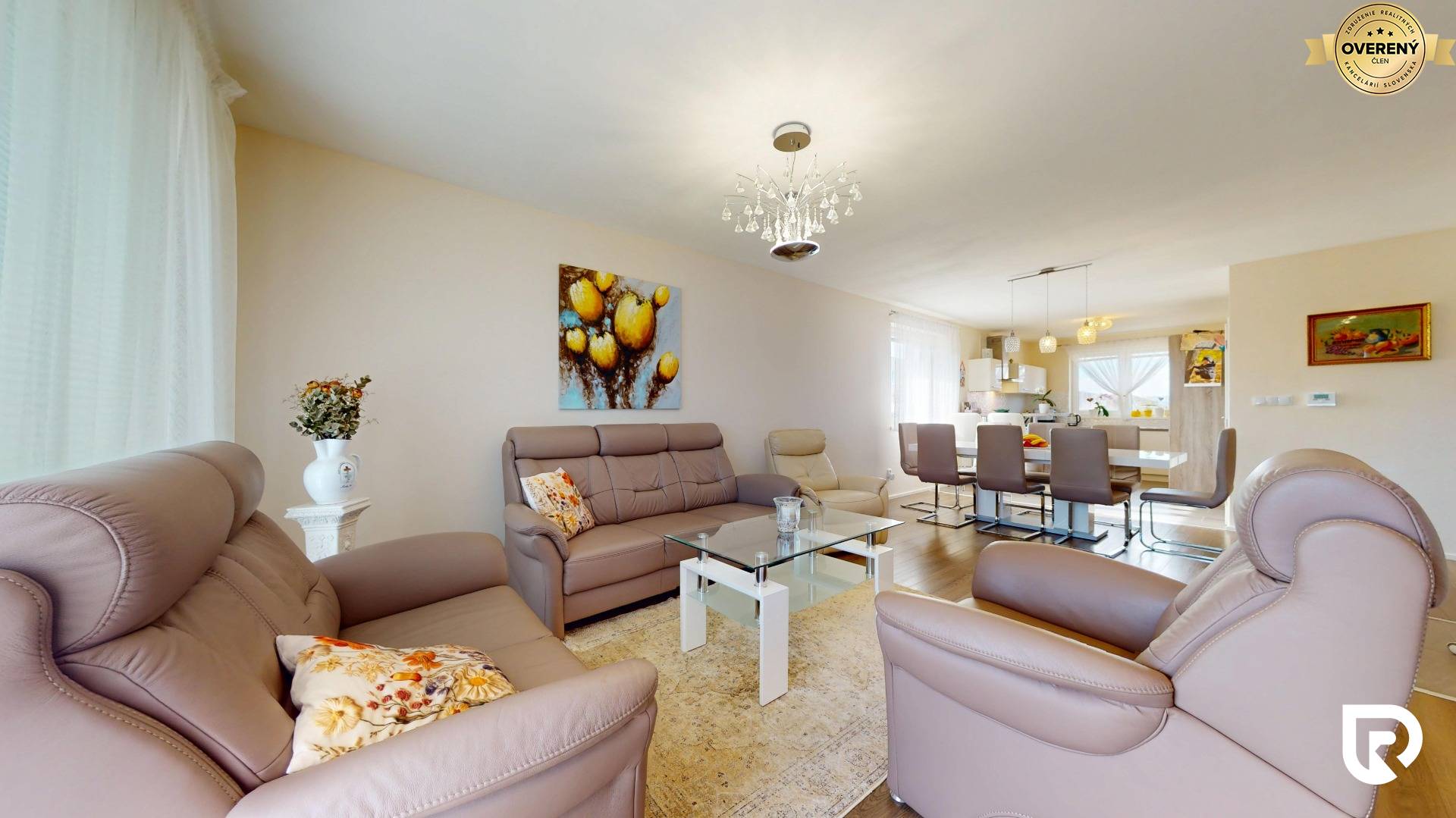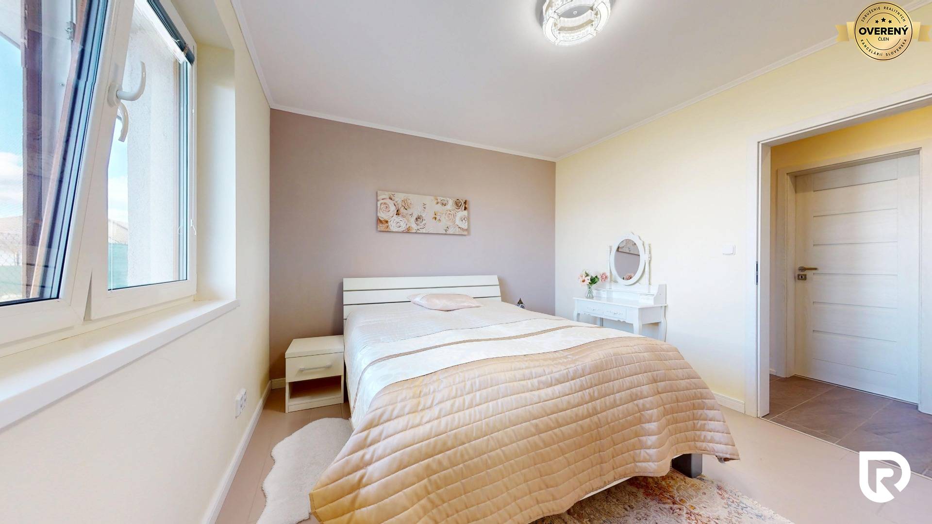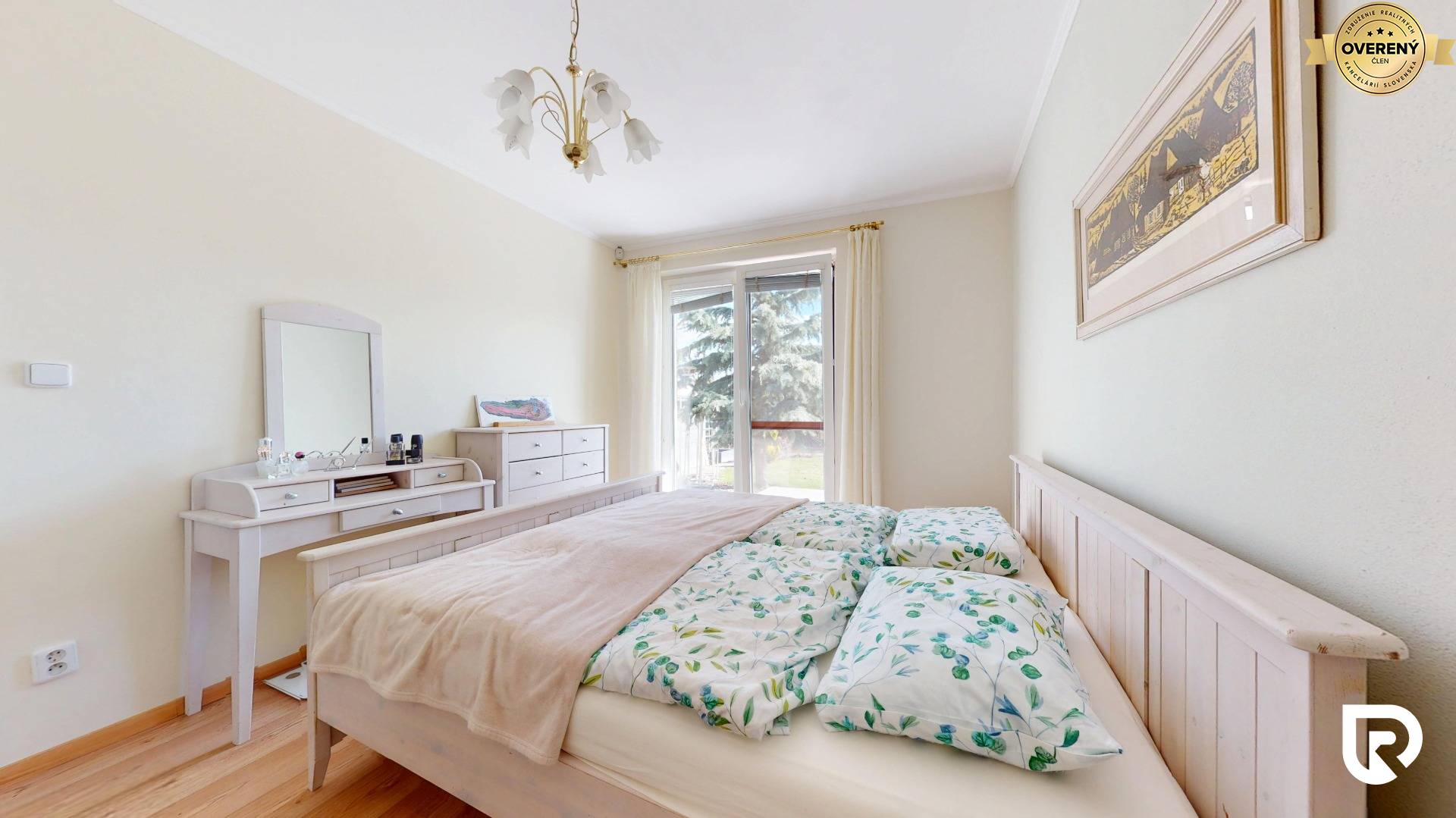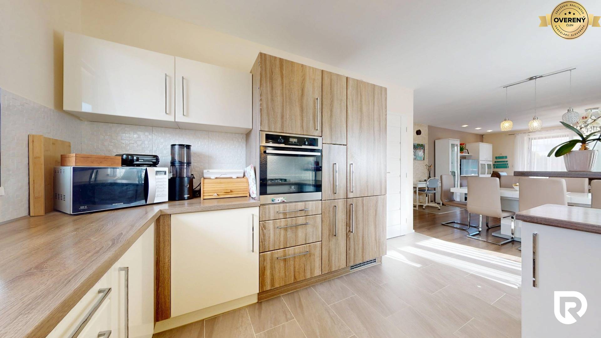 Tento dom je presne ten typ bývania, kde sa ráno zobudíte, otvoríte dvere na terasu a cítite pokoj vlastnej záhrady. Denná časť je krásne presvetlená, vzdušná a prirodzene prepája interiér s exteriérom – obývačka plynulo prechádza na terasu a trávnik, kde si viete predstaviť letné večery, grilovanie alebo deti hrajúce sa na záhrade. Obývacia izba s jedálňou tvorí srdce domu. Je to priestor, kde sa rodina stretáva po práci a škole, kde sa oslavujú narodeniny, kde sa v nedeľu spoločne obeduje. Veľké okná vpúšťajú do interiéru množstvo prirodzeného svetla, čo vytvára pocit pohody a otvorenosti. Kuchyňa je praktická, s barovým sedením – ideálne miesto na rannú kávu alebo rýchle raňajky. Zároveň zostáva prepojená s dianím v obývačke, takže nikdy nie ste „odrezaní“ od rodiny či návštevy. Spálne pôsobia pokojne a útulne. Hlavná spálňa orientovaná do záhrady ponúka súkromie a ticho, ktoré po náročnom dni ocení každý. Ďalšie izby sú ideálne ako detské izby, pracovňa alebo hosťovská izba – dom prirodzene rastie spolu s vašimi potrebami. Záhrada je upravená a udržiavaná s citom. Ponúka dostatok priestoru na oddych, záhradkárčenie aj detské hry. Vďaka rohovému umiestneniu pôsobí pozemok vzdušne a poskytuje príjemný pocit súkromia.
