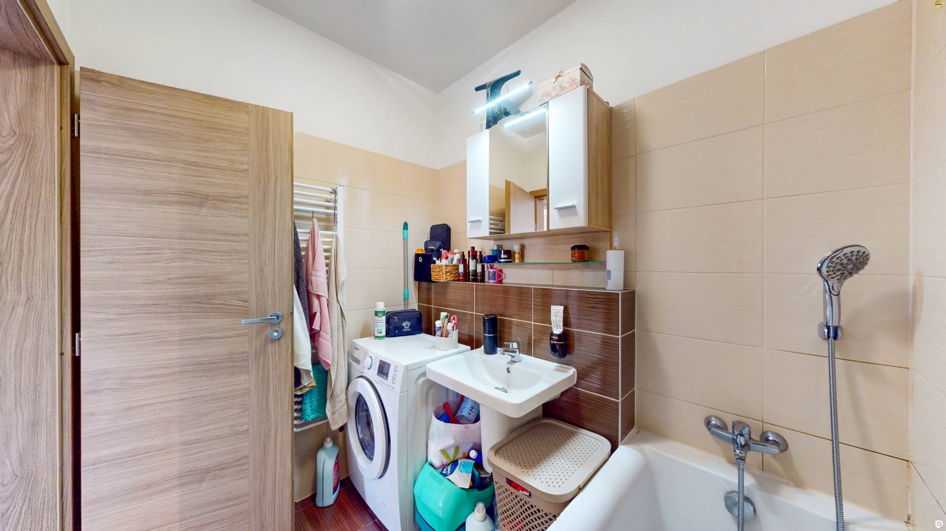 Byt ti ponúka premyslené riešenie, ktoré maximalizuje priestor v obytných miestnostiach. Zo vstupnej chodby sa dostaneš do kúpeľne s vaňou a do samostatného WC. Na jej konci sa nachádza miestnosť, ktorú môžeš využiť ako spálňu alebo pracovňu.