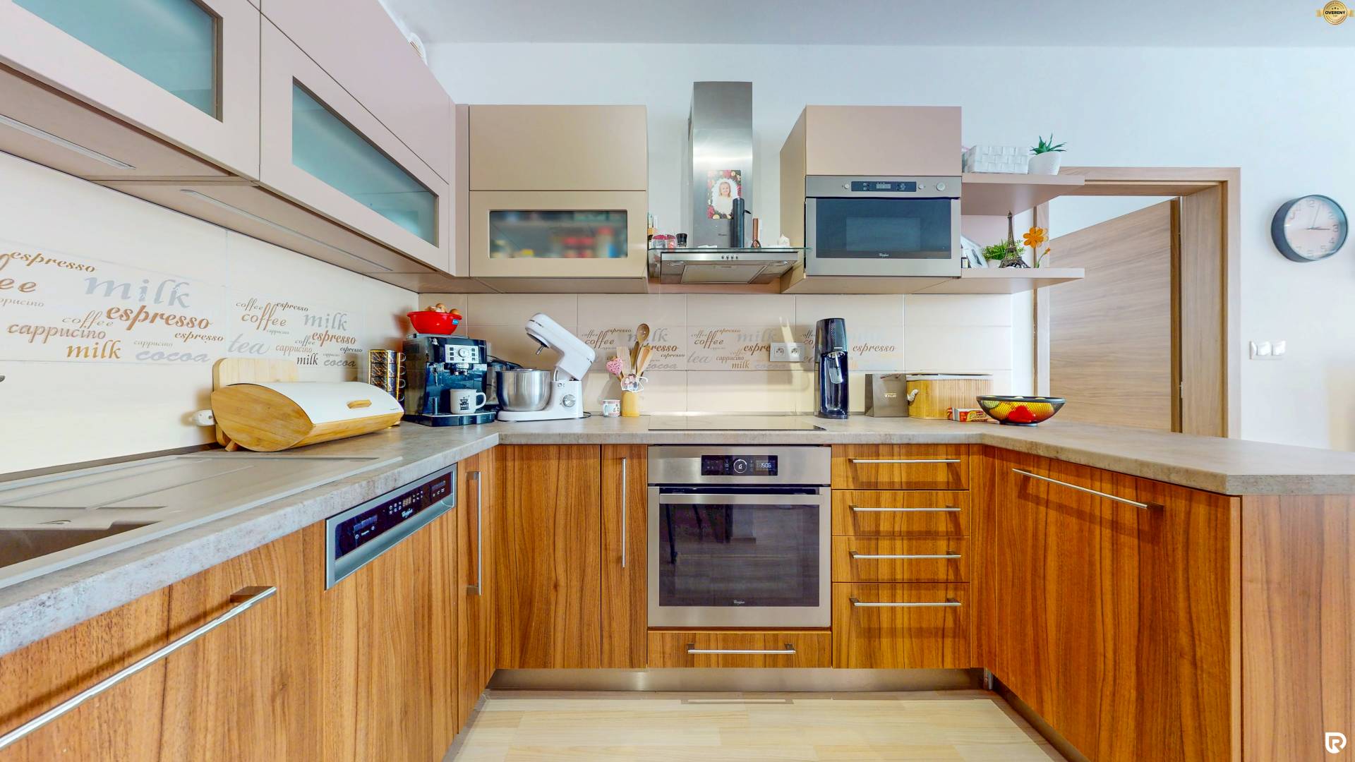 Kuchyňa je vybavená modernou linkou so vstavanými spotrebičmi. Nájdeš tu elektrickú varnú platňu, rúru, umývačku riadu a vstavanú chladničku s mrazničkou. V kúpeľni je k dispozícii práčka aj sušička.