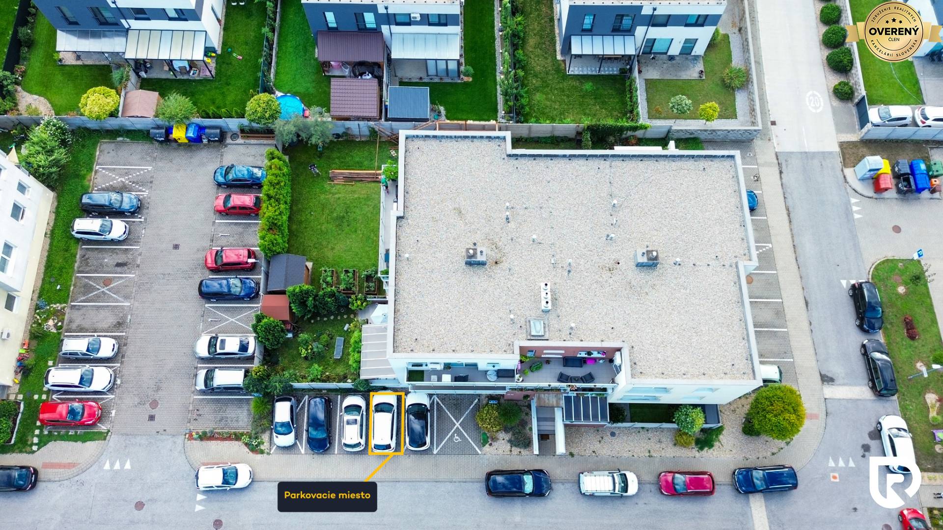 K bytu patrí aj vyhradené parkovacie miesto hneď vedľa vchodu. V okolí je navyše dostatok voľných miest pre návštevy.