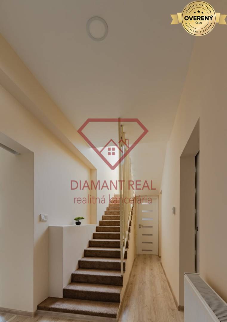 Mgr. Helena Štrebová – 18 rokov v realitách - RK Diamant Real má pre Vás v ponuke 5 izbový rodinný dom, ktorý sa nachádza na pozemku o rozlohe 450 m2, zastavaná plocha 100 m2 a úžitková 160 m2. V roku 2024 prebehla kompletná, poctivá rekonštrukcia, počas ktorej nadobudol dom nové okná Salamander, interiérové a vchodové dvere, nová elektrika, voda, plynové kúrenie na radiátory, kožovka, strojové stierky, maľovka, sadrokartón s bodovými svetlami, sieťky, žalúzie, strešná izolácia a zateplenie 12 cm polystyrénom. RD je napojený na všetky IS, má zavedenú optiku, predprípravu na klímu a krbové kachle.