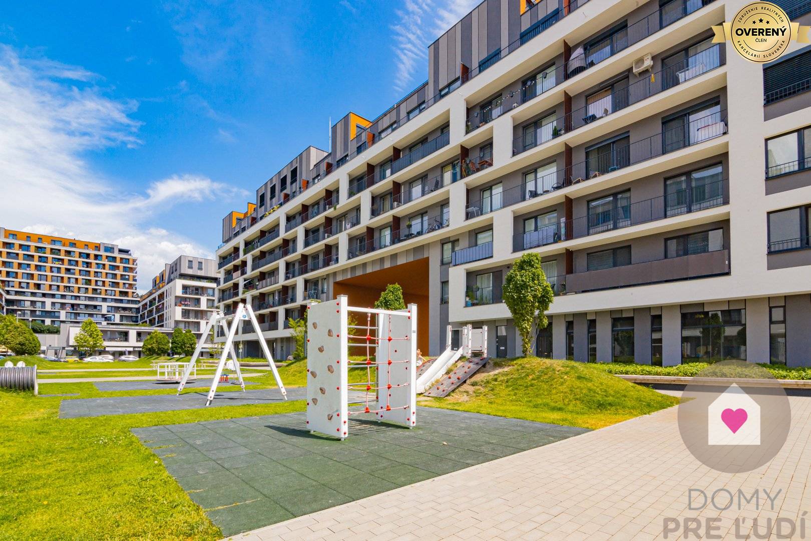 Okolie domu poteší zázemím v podobe nasledovného: obchodné centrum Slnečnice Market, zastávka autobusu, výbeh pre psov, fitout ihrisko, školské zariadenie, detské ihrisko. Premyslený a prepracovaný areál ponúka hodiny aktivít pre mladé rodiny ale aj bezdetné páry. Okrem množstva ihrísk tu nájdete aj workout, kaviarne, prevádzky fastfood rôznych kuchýň a čoskoro teda aj bežeckú dráhu a jeden z najväčších parkov. Lákadlom je aj cyklotrasa v dostupnej vzdialenosti. V rámci usporiadaného areálu s komunitným životom nájdete multifunkčné ihrisko, workout ihrisko a kilometre prechádzok po kvalitných chodníkoch s lavičkami a úžasným prostredím. V zóne bude vybudovaný park, či ďalšie športové ihrisko aj s bežeckou dráhou. Okrem toho je výhodou rýchle napojenie na Petržalskú hrádzu, dostupnosť jazier ako Čunovské alebo Rusovské jazero. Nákupné centrum Slnečnice Market sústreďuje množstvo prevádzok, ktoré sú dostupné na pešo prechádzkou po promenáde, pričom tu nájdete potraviny Billa, 101 drogériu, Pepco, lekáreň, potraviny Starý Otec a niekoľko prevádzok reštaurácie a rýchleho občerstvenia. V zóne sa nachádza aj prevádzka detskej polikliniky spomínaná lekáreň, či gynekologická ambulancia. Na presun do centra mesta môžete využiť autobusy č. 91, 191, 90, 93, 98 a čoskoro aj električku, ktorá má byť dokončená do konca leta. Cesta do centra mesta nezaberie viac ako 20 minút, pričom frekvencia premávania má byť len 5 minút!