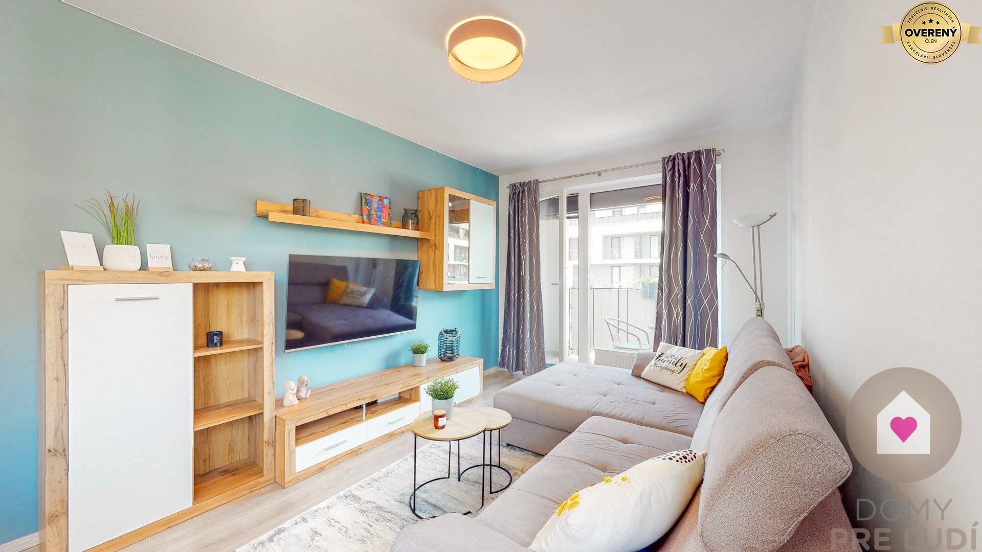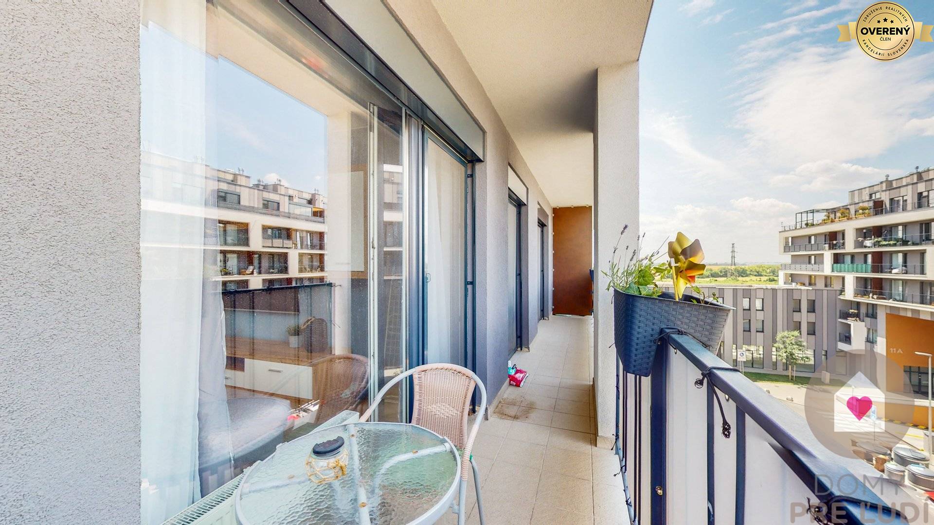 - obývacia izba s veľkou sedačkou, televízorom, konferečným stolíkom, skrinkovou zostavou, stolíkom pod televízorom a jedálenskym stolom so stoličkami. Z obývačky sa vychádza na priestranný balkón so sedením (8,36m2), ktorý je v pozdĺž celého bytu a sprístupnený je z každej miestnosti.