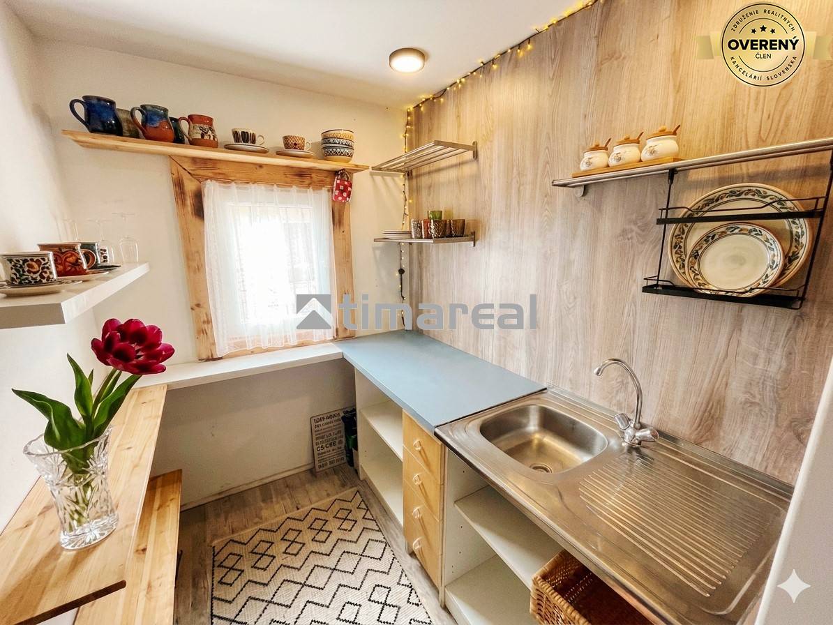 Vstupná chodba, útulná kuchynka, jedna samostatná izba a kúpeľňa so sprchovým kútom a záchodom. Polovica chatky je podpivničená, čo je super priestor na uskladnenie ovocia, náradia alebo čohokoľvek, čo nechcete mať na očiach.