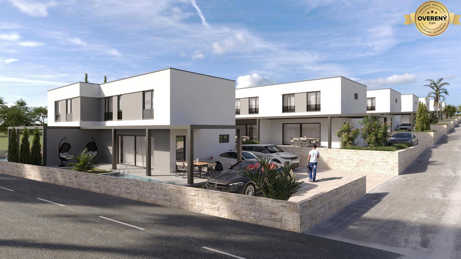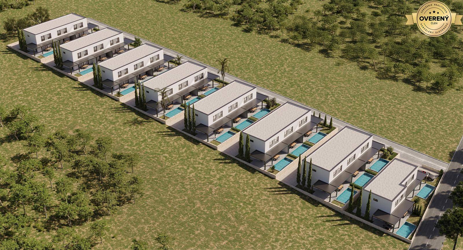 Projekt nových apartmánových domov s celkovo 23 bytmi sa nachádza v novej tichej uličke, 650m od mora. V každom dome sú 3 apartmány a ku každému apartmánu patria 2 parkovacie miesta.