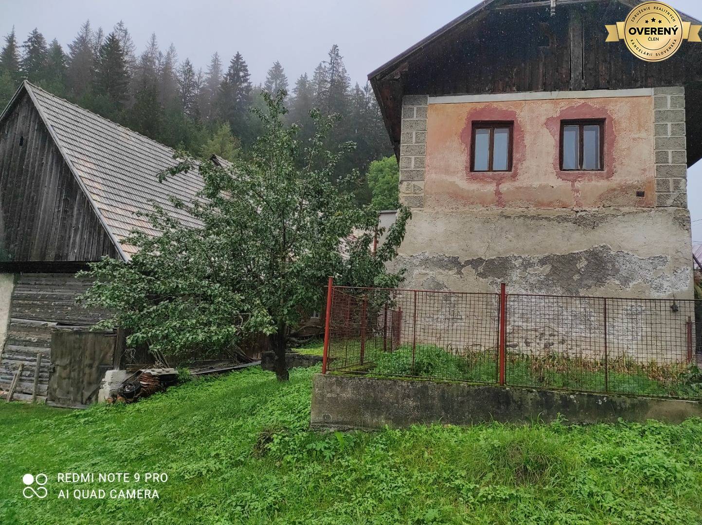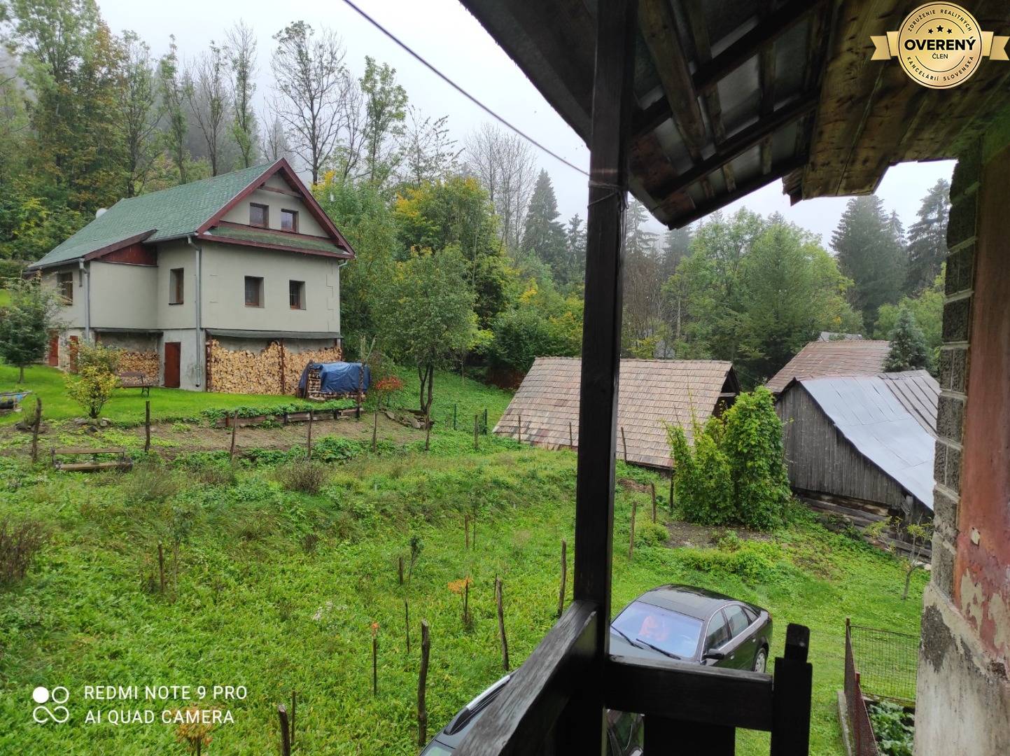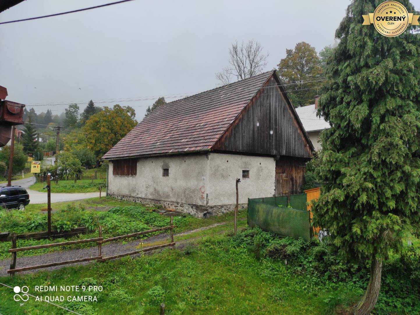 Pred domom sa nachádza udržiavaná záhradka s rodiacimi stromami (slivky, hrušky, jablone). Na pozemku je drevená stodola vhodná na dvojgaráž, dreváreň a sklad. Parkovanie je možné na dvore alebo v samostatnej garáži s dielňou.