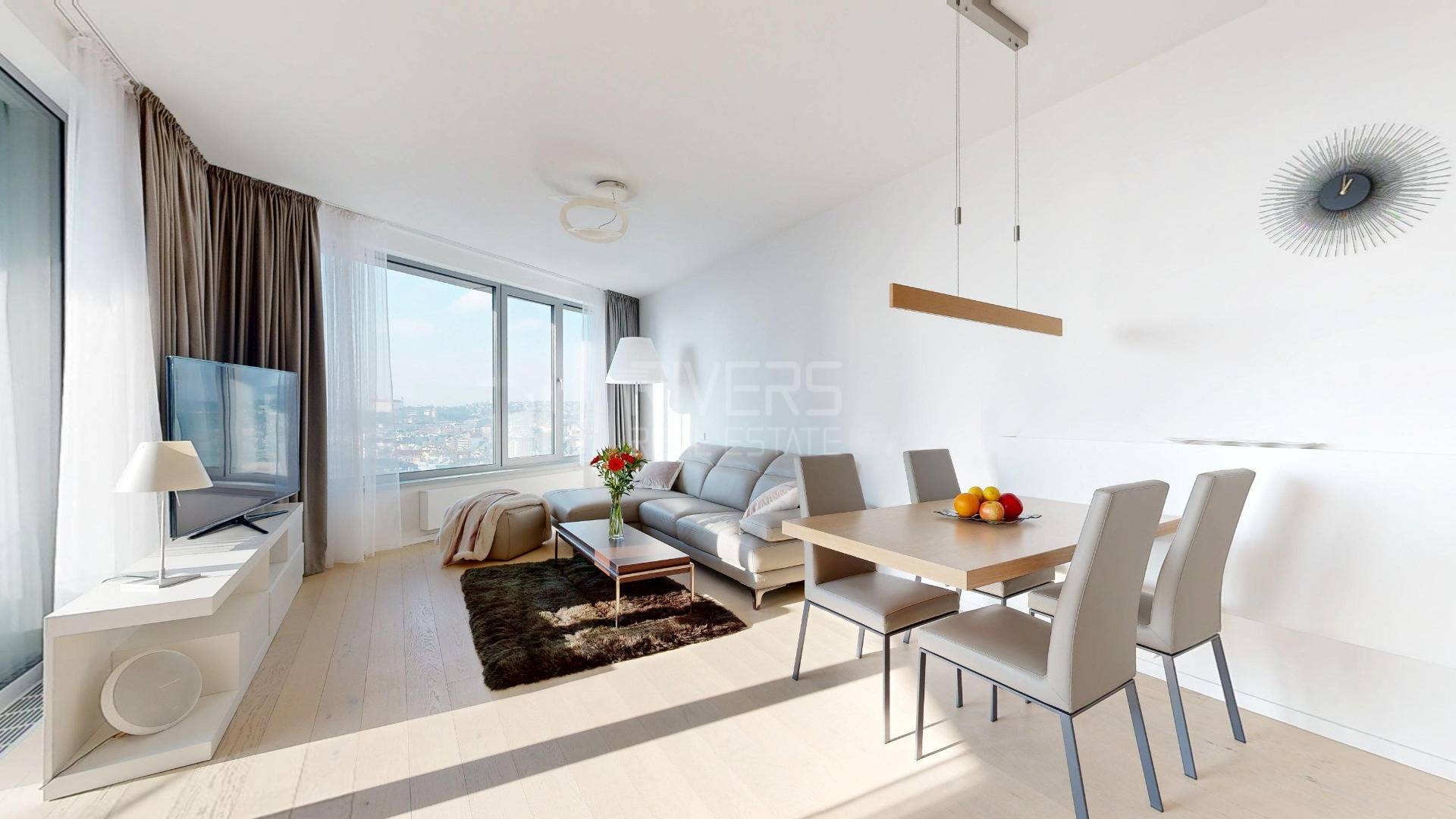 Realitná kancelária RIVER REAL ESTATE ponúka na predaj elegantný na mieru zariadený byt na 20. poschodí projektu Sky park. Z bytu je úžasný výhľad na západnú panoramu mesta a Bratislavský hrad.