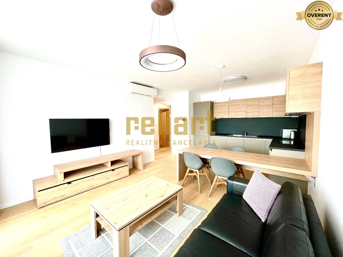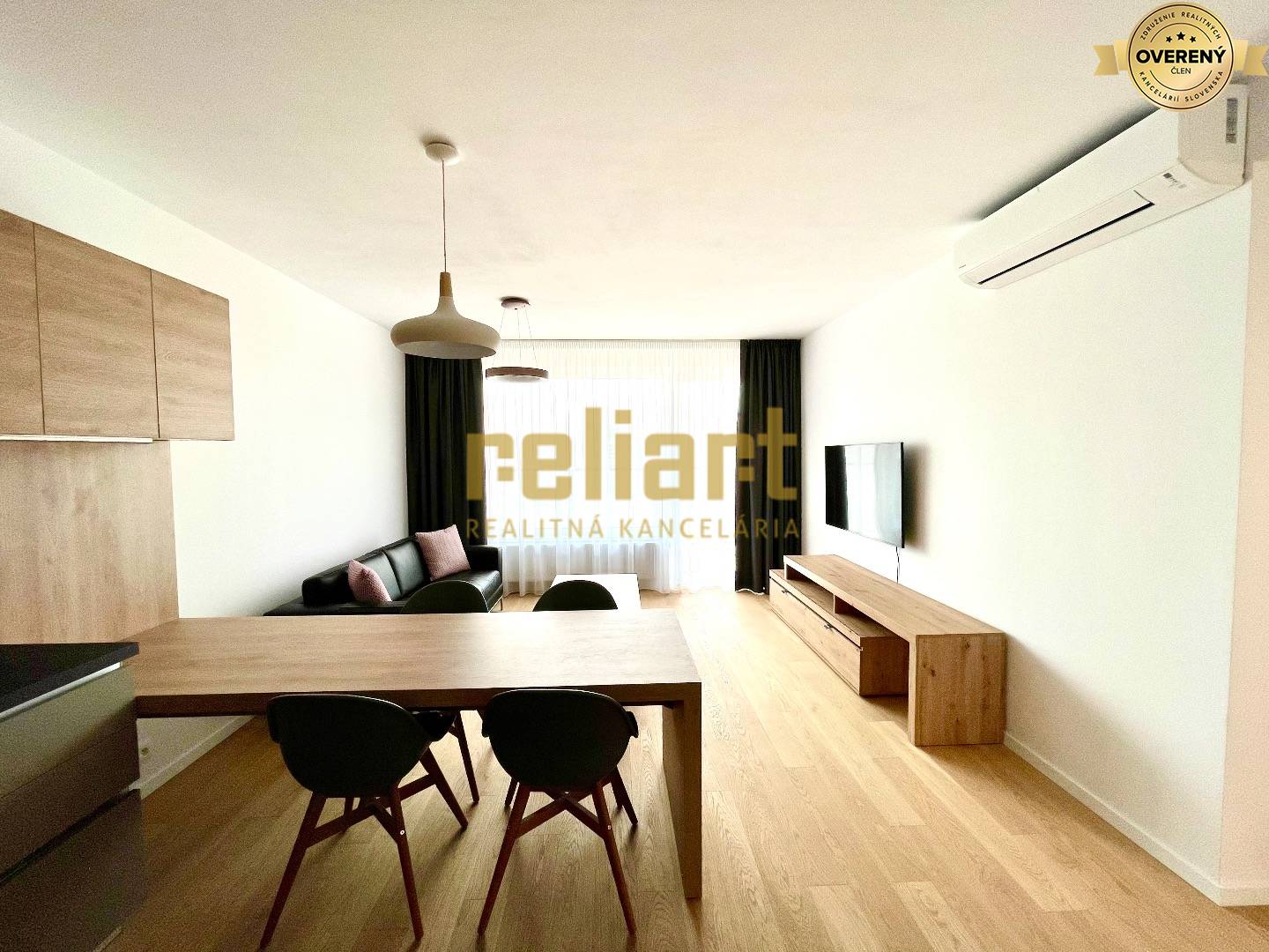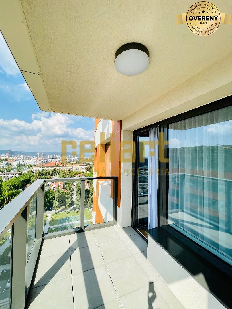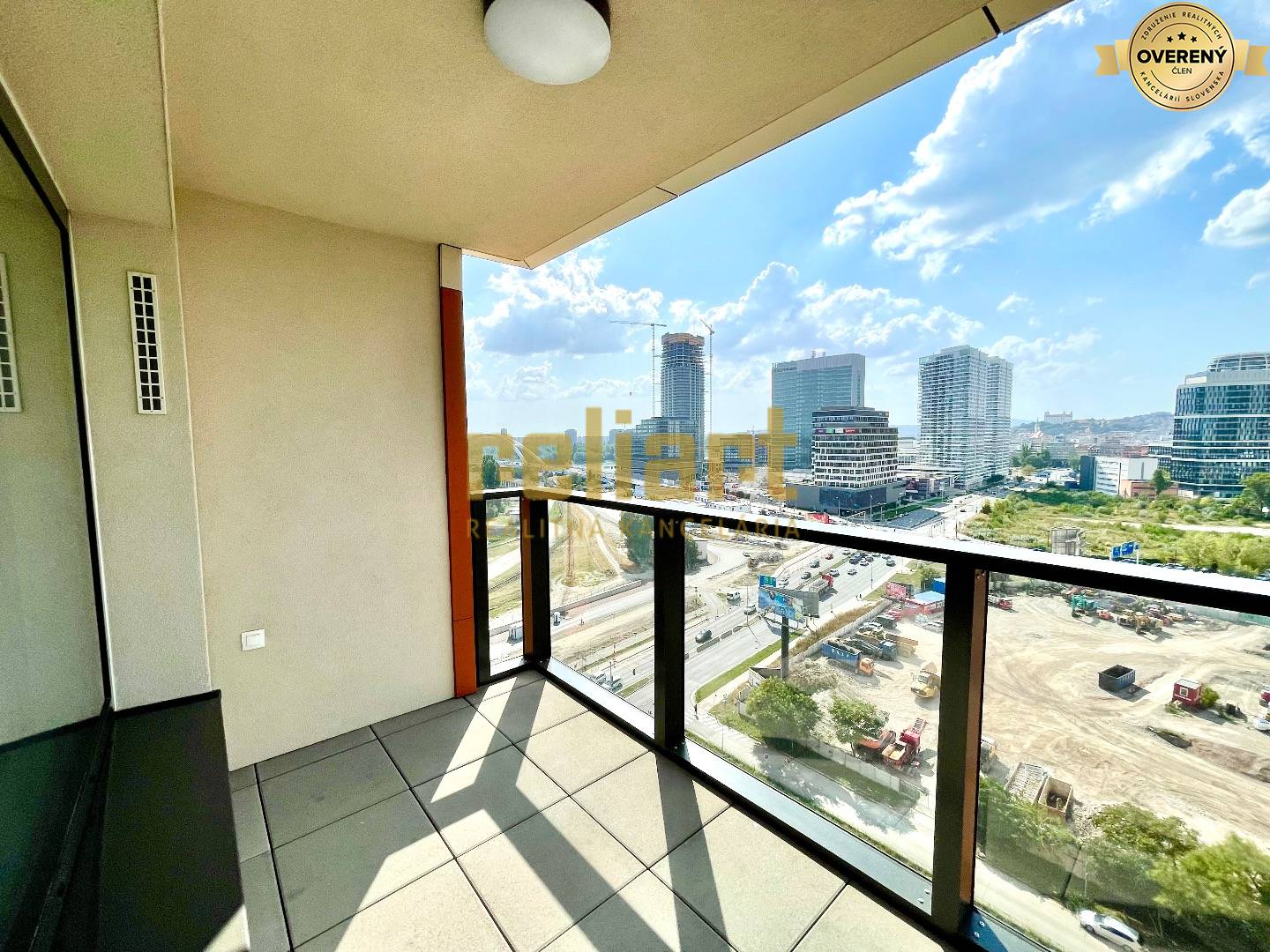 Ponúkame úplne nový, ešte neobývaný, 2-izbový byt s rozlohou 65m2 a balkónom nachádzajúci sa v projekte "Klingerka" pri Eurovei. Západne orientovaný byt sa, nachádza na 14. poschodí, s krásnym výhľadom na Bratislavský hrad a panorámu mesta. Dispozíciu bytu tvorí vstupná chodba, otvorená dispozícia obývačky so vstupom na veľkú lodžiu, samostatnej spálne so zabudovaným šatníkom, kúpeľňou s vaňou a WC. Byt sa prenajíma plne zariadený a vybavený vrátane kuchynských a domácich spotrebičov (umývačka riadu, chladnička s mrazničkou, el. varná platňa, mikrovlná rúra el. rúra, digestor, práčka so sušičkou a LCD TV) . Šatník a vstavané skrine v chodbe poskytujú dostatok úložného priestoru.Byt je klimatizovaný.