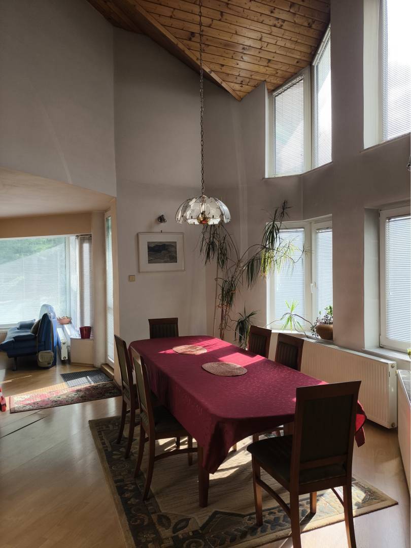V dome je ústredné kúrenie na plynový kotol. Dom je napojené na kanalizáciu, na obecnú vodu a internet. Na podlahách sú parkety a dlažby. Dom pozostáva s viacerých izieb a viacerých kúpeľní. Je tu velká galéria a obrovská terasa. Nájdete tu saunu a vnútorný bazén v pivnici, garáž na tri autá a fitness miestnosť.