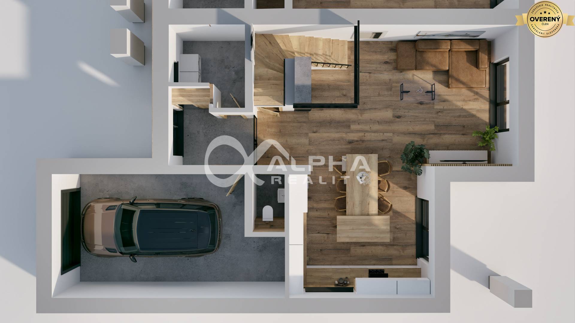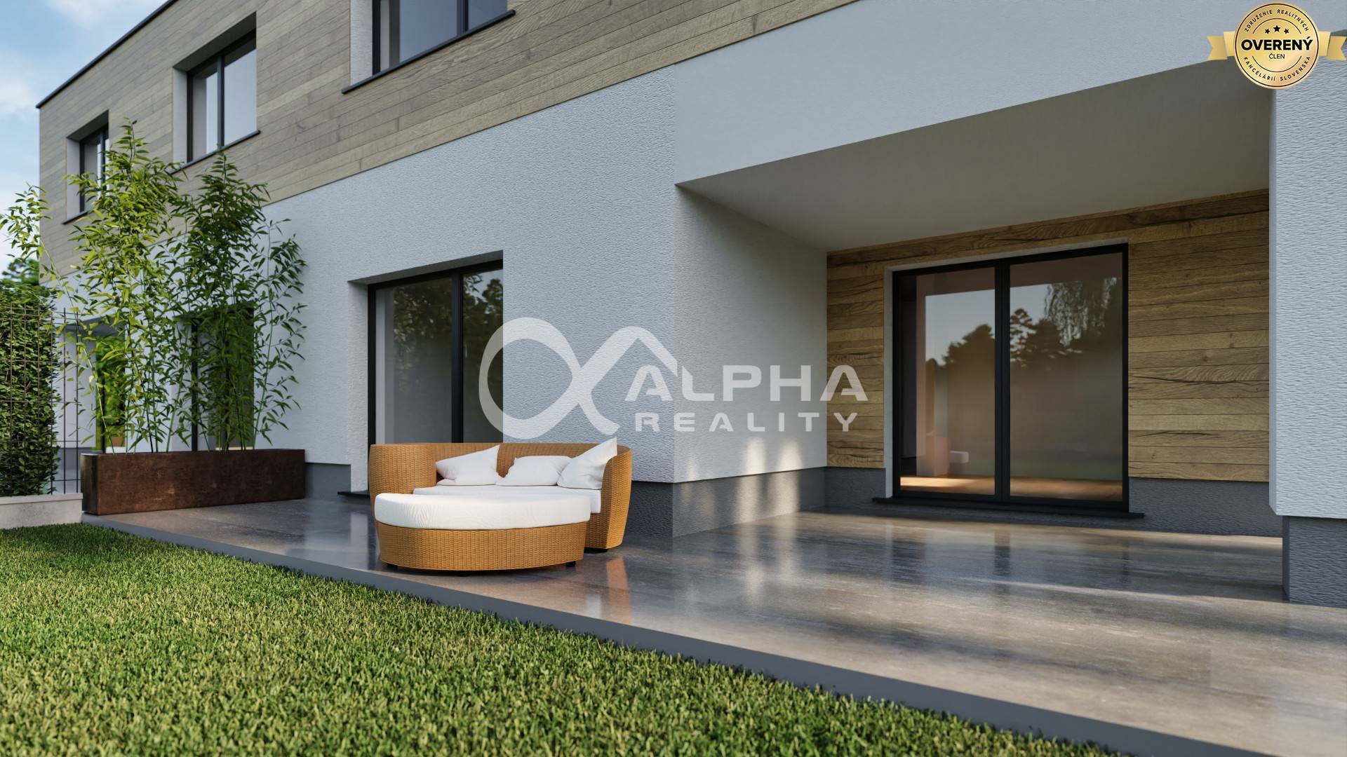 -prevedenie: ŠTANDARD - laminátové podlahy, sádrokartónové stropy, interiérové dvere s obložkami, dlažby, obklady, sanita, svietidlá, bojler + základné terénne úpravy.