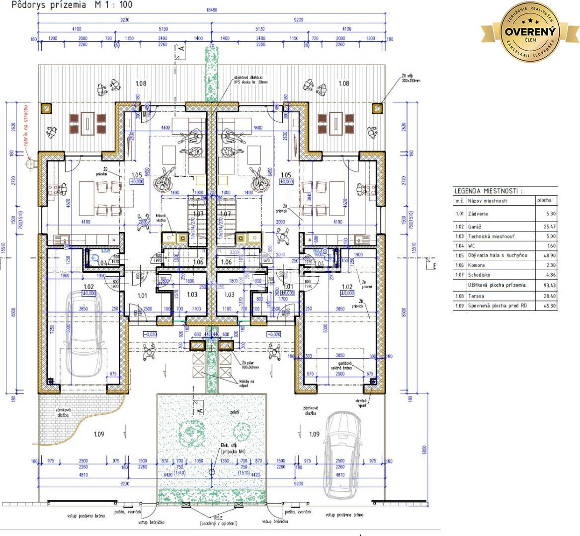 -úžitková plocha: 151,7m² + 25,5m² garáž,