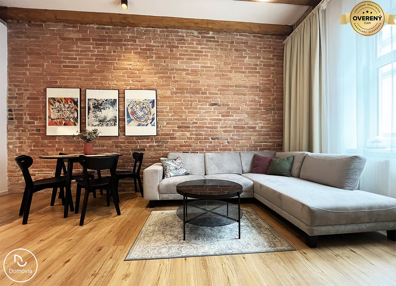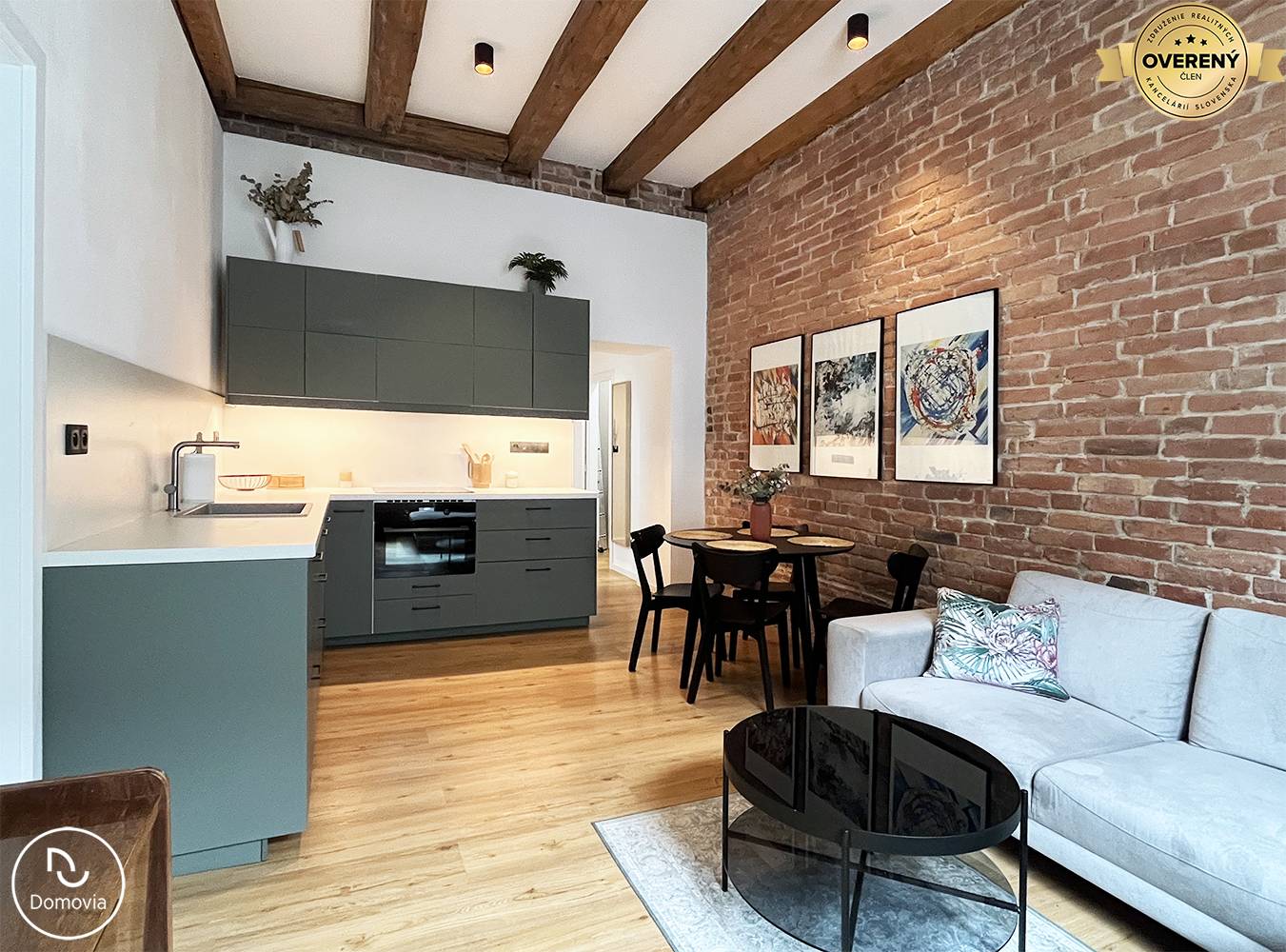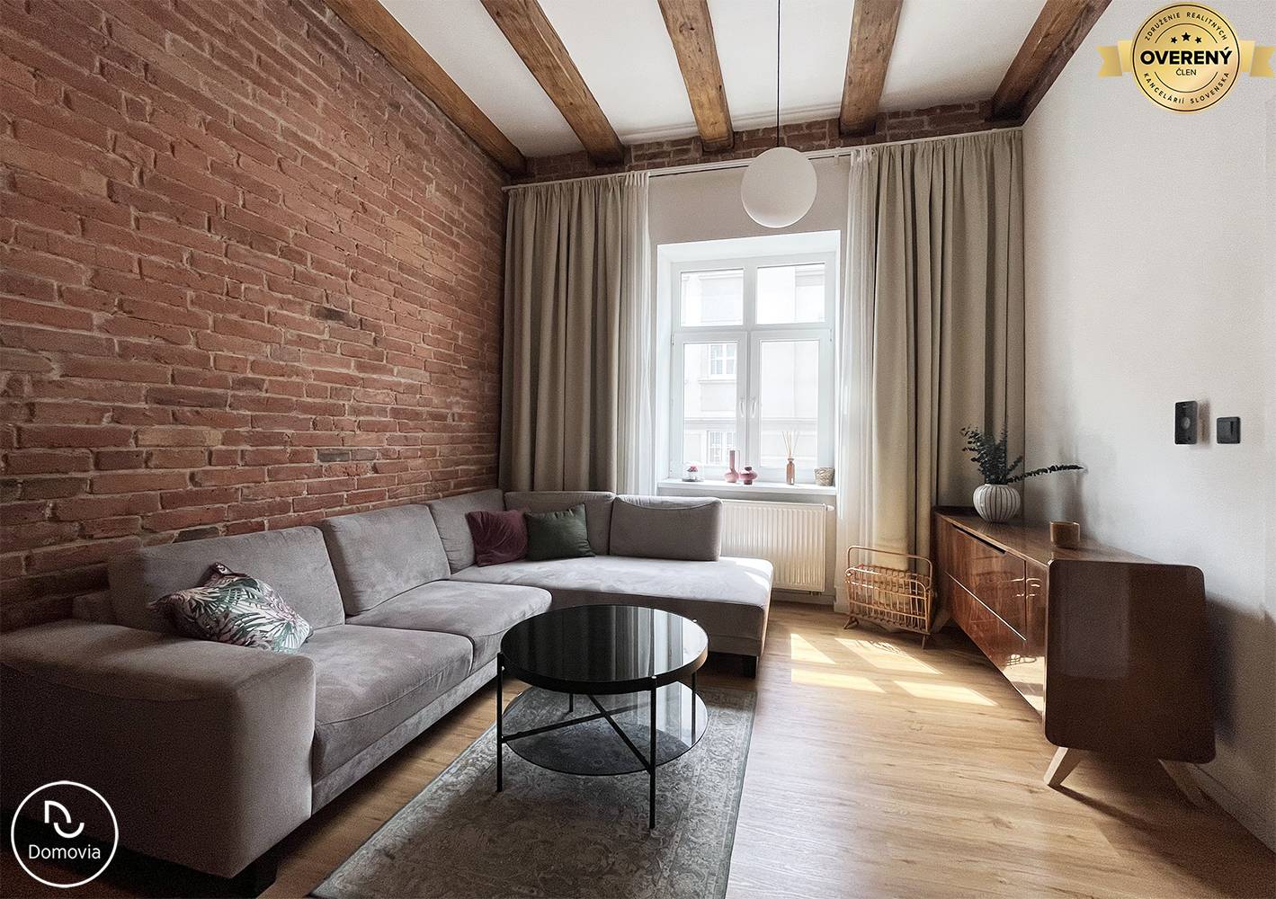 Realitná kancelária Domovia ponúka exkluzívne na predaj výnimočný 2 izbový byt s vysokými stropmi nachádzajúci sa vo vyhľadávanej lokalite pri Trnavskom mýte v Bratislave. Ak hľadáte bývanie, ktoré má dušu, práve ste ho našli! Tento byt kombinuje moderný dizajn s industriálnymi prvkami, ako sú priznané tehly a drevené trámy.