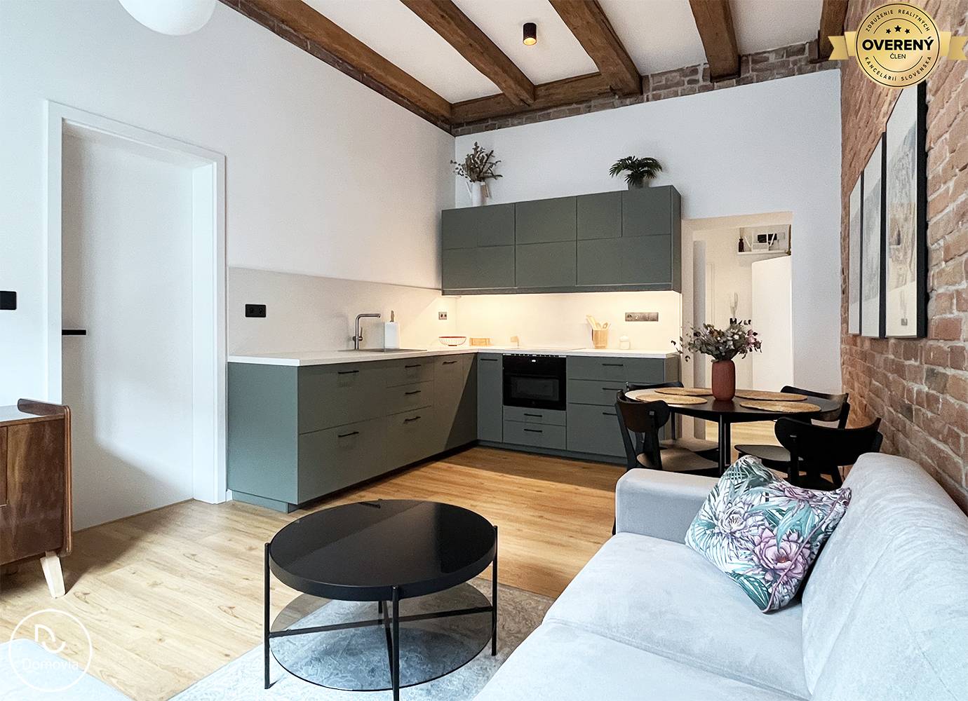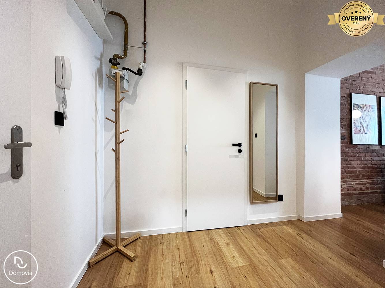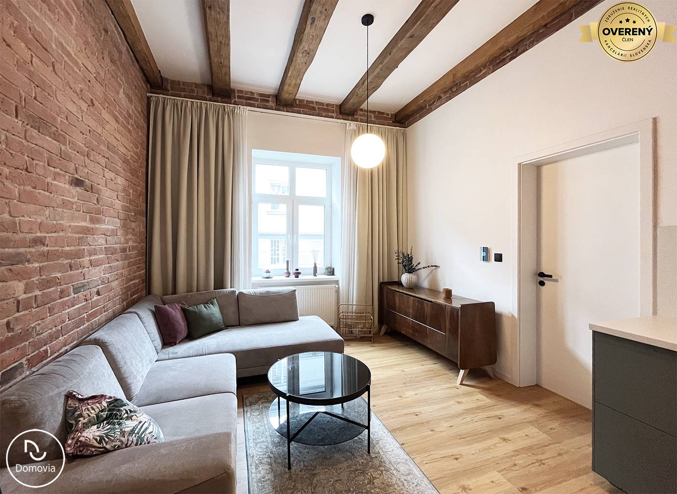 Realitná kancelária Domovia ponúka exkluzívne na predaj výnimočný 2 izbový byt s vysokými stropmi nachádzajúci sa vo vyhľadávanej lokalite pri Trnavskom mýte v Bratislave. Ak hľadáte bývanie, ktoré má dušu, práve ste ho našli! Tento byt kombinuje moderný dizajn s industriálnymi prvkami, ako sú priznané tehly a drevené trámy.