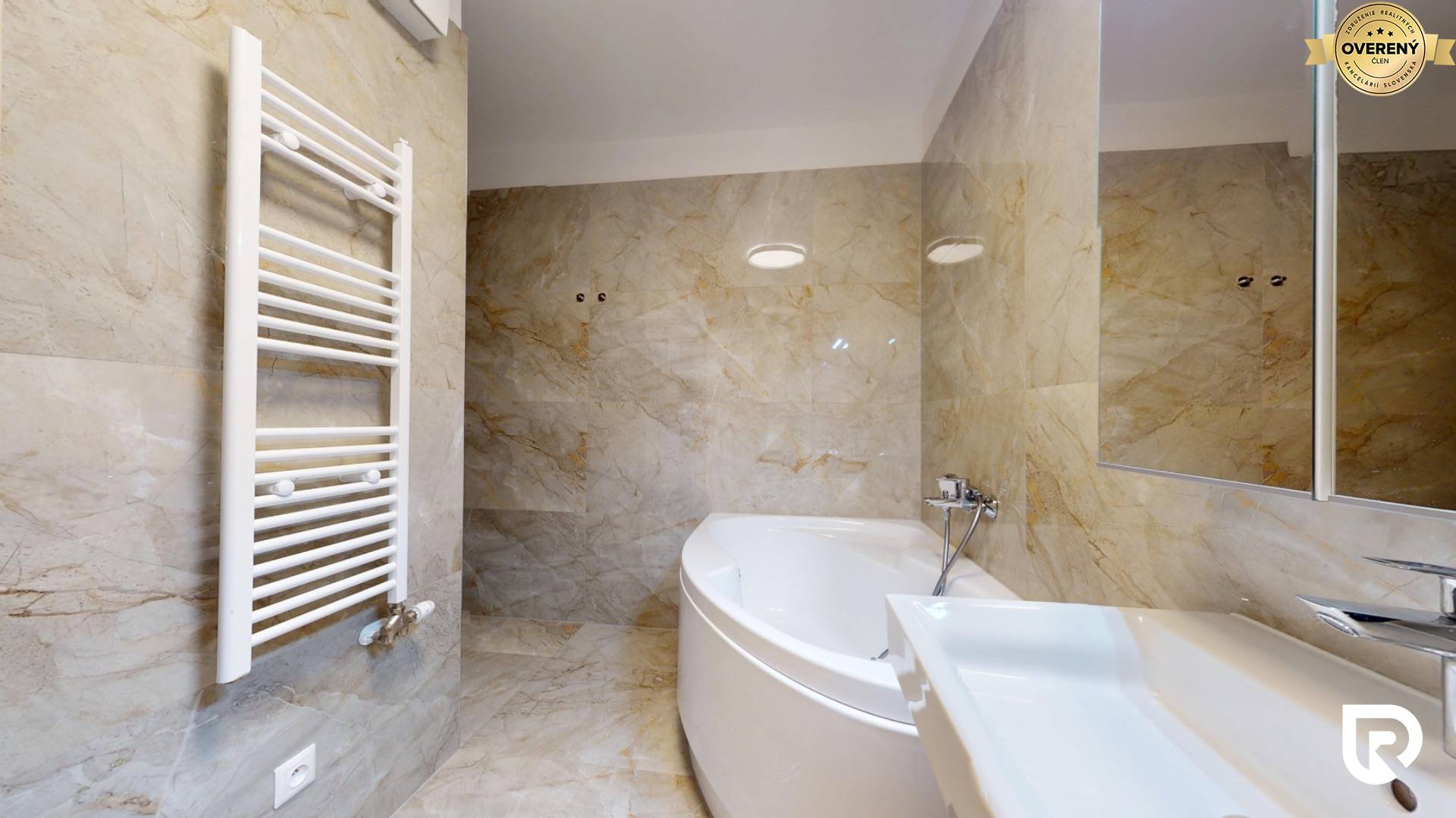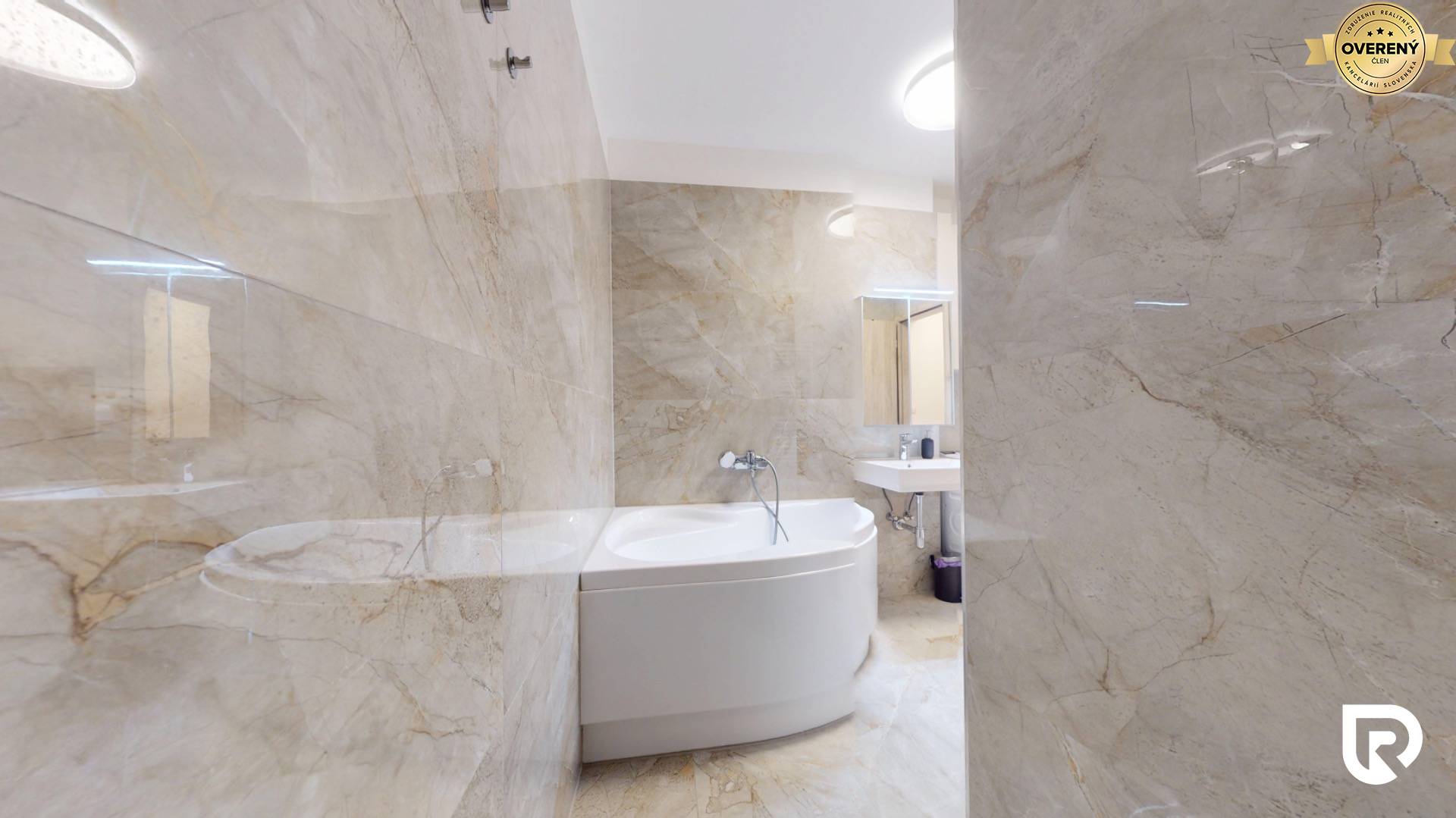 • priestranná kúpeľňa s rohovou vaňou a sprchovým kútom