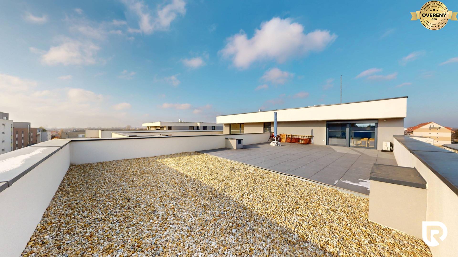 Veľkorysá strešná terasa o výmere cca 120 m² predstavuje výnimočný benefit tejto nehnuteľnosti. Poskytuje dostatok priestoru na vytvorenie oddychovej zóny, letnej jedálne, relaxu či súkromného exteriéru s výhľadmi na okolie.