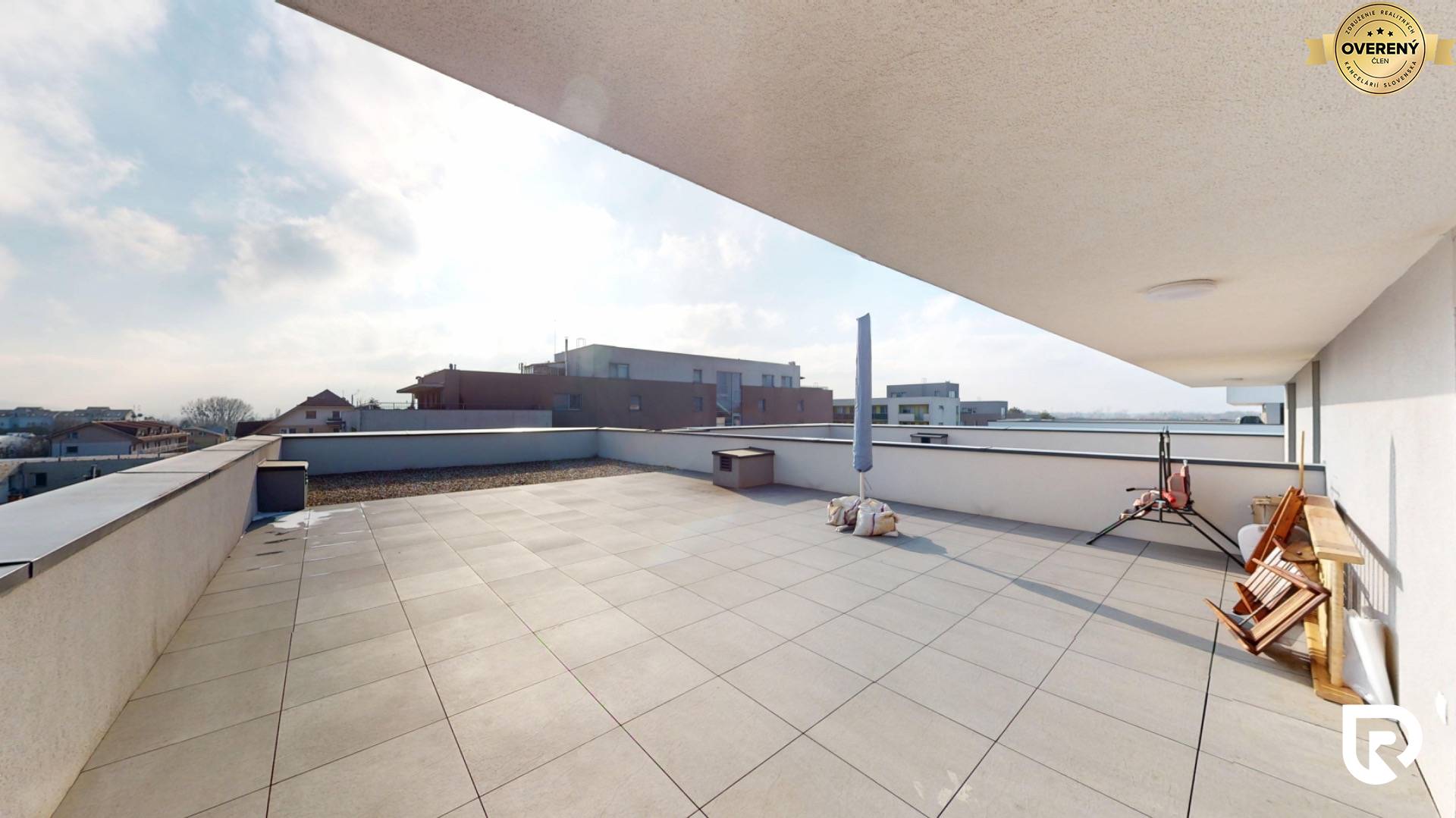 Veľkorysá strešná terasa o výmere cca 120 m² predstavuje výnimočný benefit tejto nehnuteľnosti. Poskytuje dostatok priestoru na vytvorenie oddychovej zóny, letnej jedálne, relaxu či súkromného exteriéru s výhľadmi na okolie.