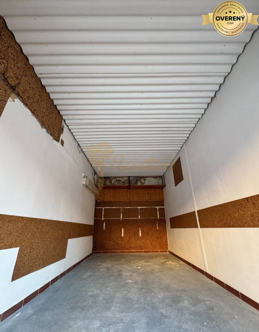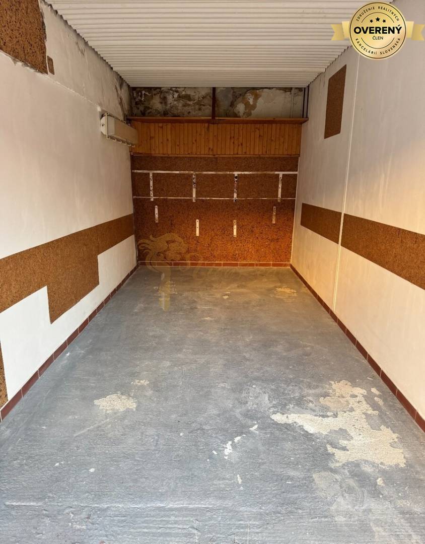 Samotná garáž je samostatná jednotka v rade garáží s možnosťou pripojenia na elektrinu; pozemok pod garážou je súčasťou predaja. Plechové uzamykateľné brány zvyšujú zabezpečenie, čo dopĺňa už tak pokojnú a bezpečnú povahu ulice. Vďaka štandardným rozmerom 13 m² je vhodná na parkovanie, no rovnako dobre poslúži ako sklad, dielňa či pivnica – a keďže je ihneď k dispozícii, využitie viete prispôsobiť svojim plánom bez odkladu.