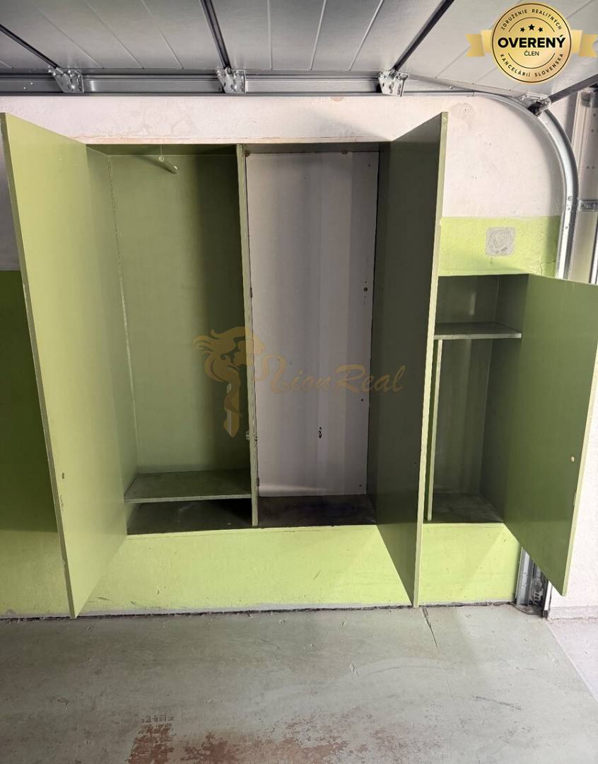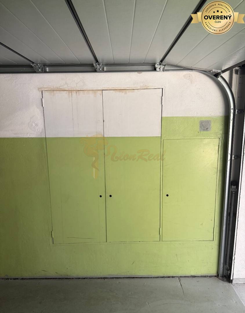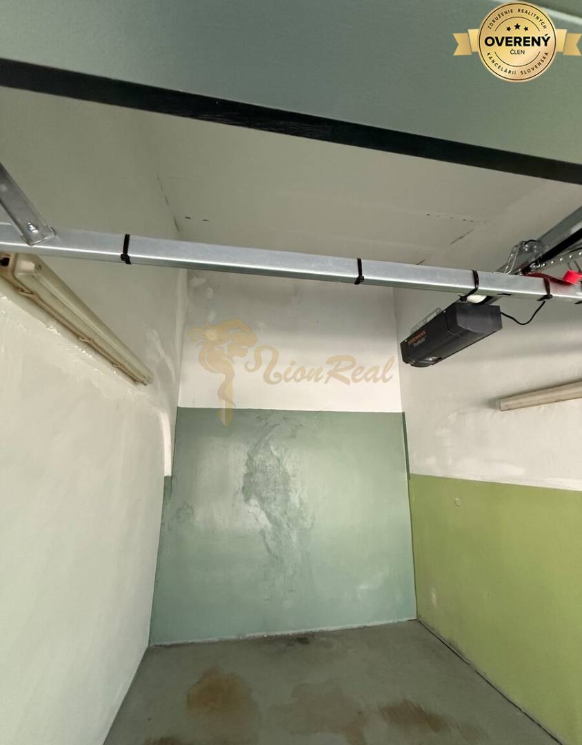 Výmera 16 m2, vjazd do garážového domu cez bránu na elektrické ovládanie. Garáž ma novu Hormann bránu. Garáž ma vysoký strop, v najvyššom bode ma 420cm, možnosť využitia ako úložný priestor.