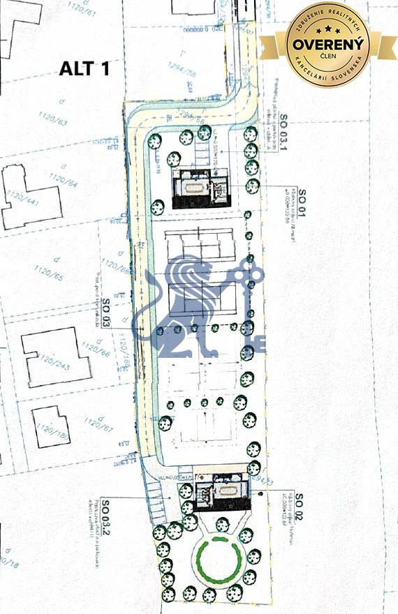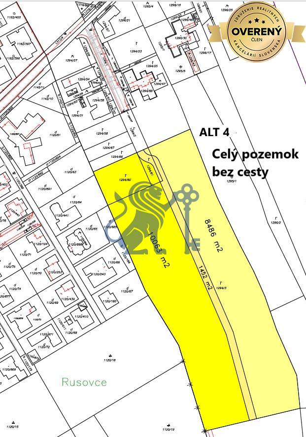 Alt 1: najmenšia alternatíva a je to menšia 1/2 pozemku s právoplatným ÚR pre športový areál o výmere 7346 m2 a s vlastnou komunikáciou z boku pozemku. Alt 2: celá 1/2 pozemku s právoplatným ÚR pre športový areál o výmere 10063 m2 a s vlastnou komunikáciou z boku pozemku. Alt 3: celá 1/2 pozemku o výmere 10063 m2 s komunikáciou v strede súboru pozemkov. Alt 4: celý súbor pozemkov s cestou v strede, ktorá ostane vo vlastníctve aktuálneho majiteľa a všetci ostatní majitelia pozemkov v okolí budú mať právo prechodu. Viď fotogalériu.