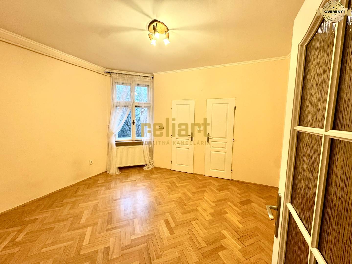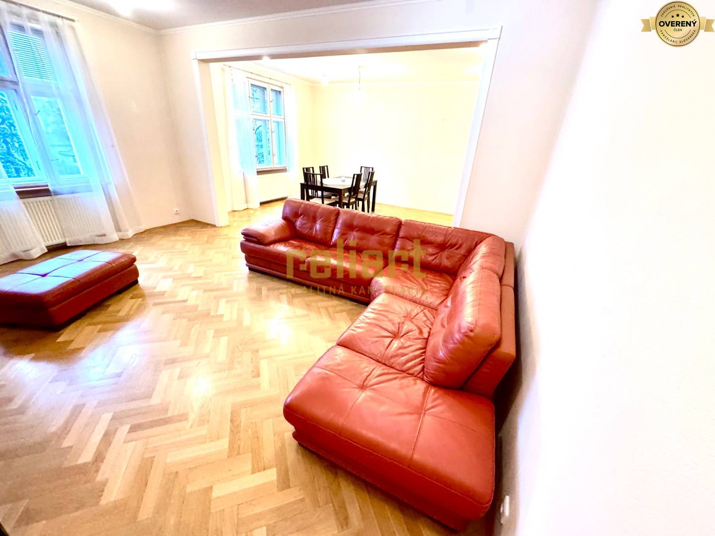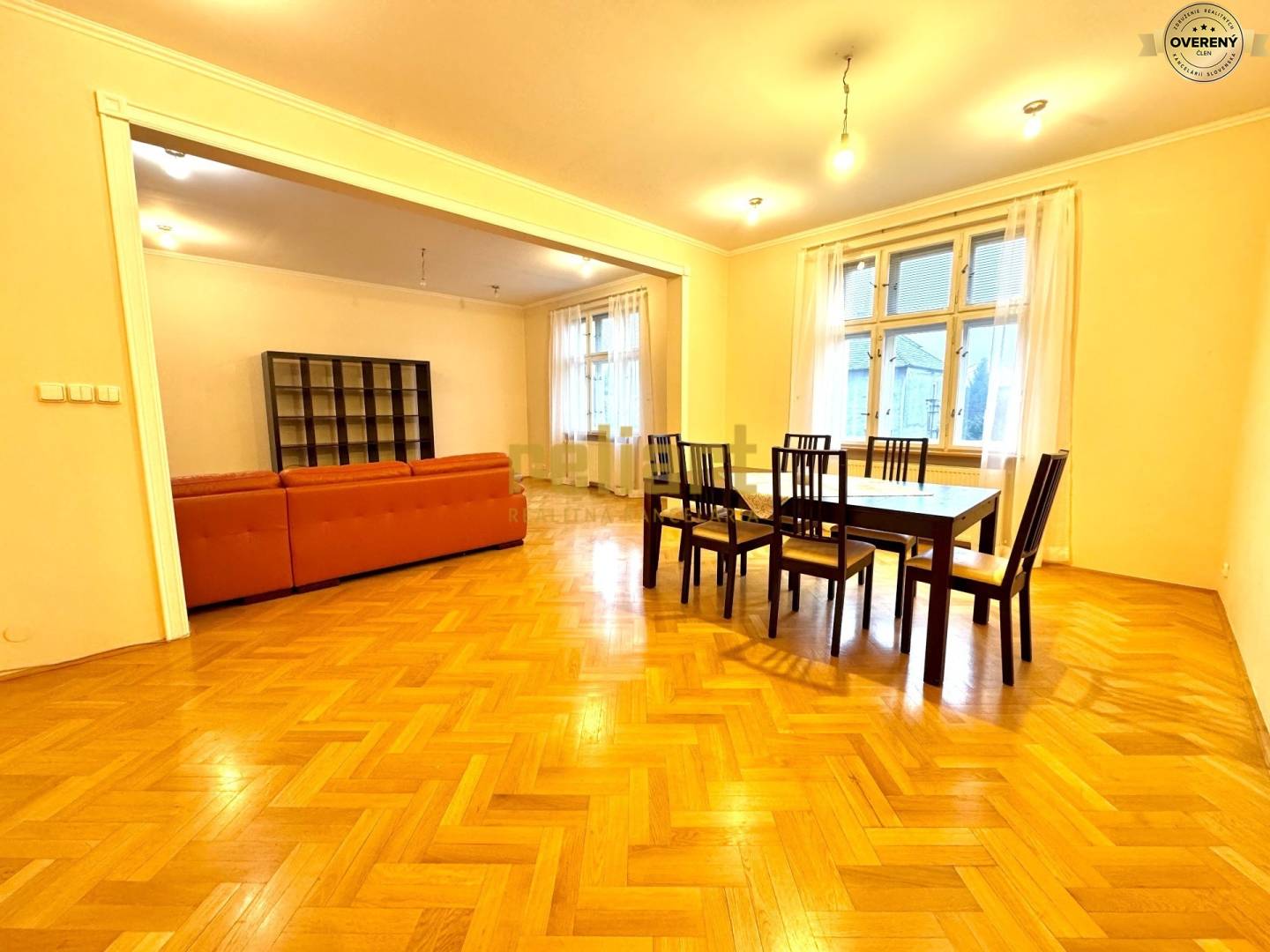 We offer for rent a partially furnished, exclusive old town 4-room apartment in a historic building near the the Horský Park. The spacious and generously designed apartment with an area of 140m2 consists of an entrance hall, a large separate and fully equipped kitchen (with all electrical appliances), through double doors you enter a huge living room oriented to the to Horský Park, three separate bedrooms, wardrobes, two bathrooms and two toilets. The apartment has beautiful wooden floors, wooden windows, double doors. The apartment building has its own land, where it is possible to park a car for residents, as well as a pleasant and quiet community garden. The apartment building has elegant old town architecture and is set in the green environment of the Mountain Park and the villa district that surrounds it. The advatage is the accessibility of public transporation to all city directions.
