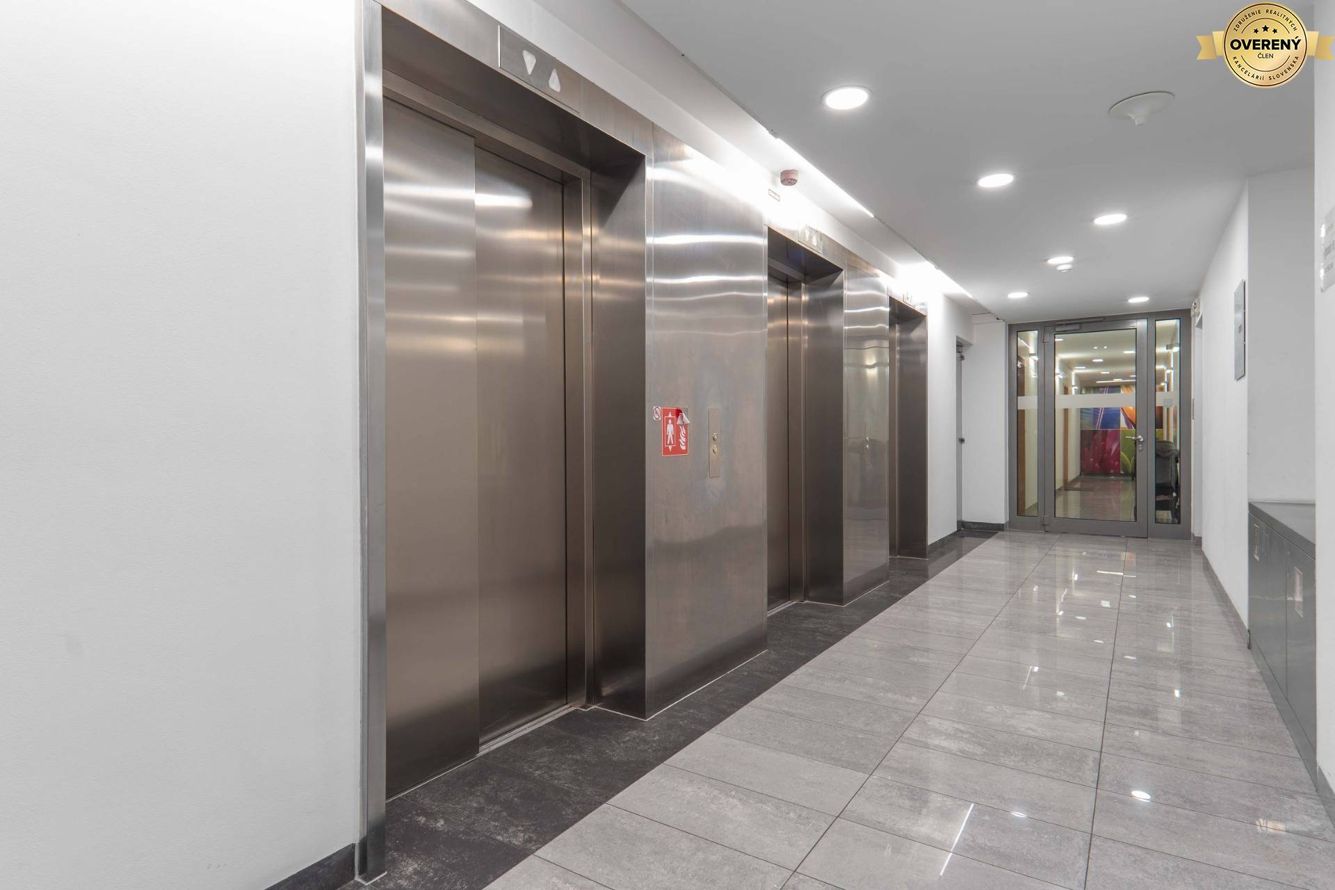 Vstup do budovy je cez non-stop 24/7 recepciu so strážnou službou.