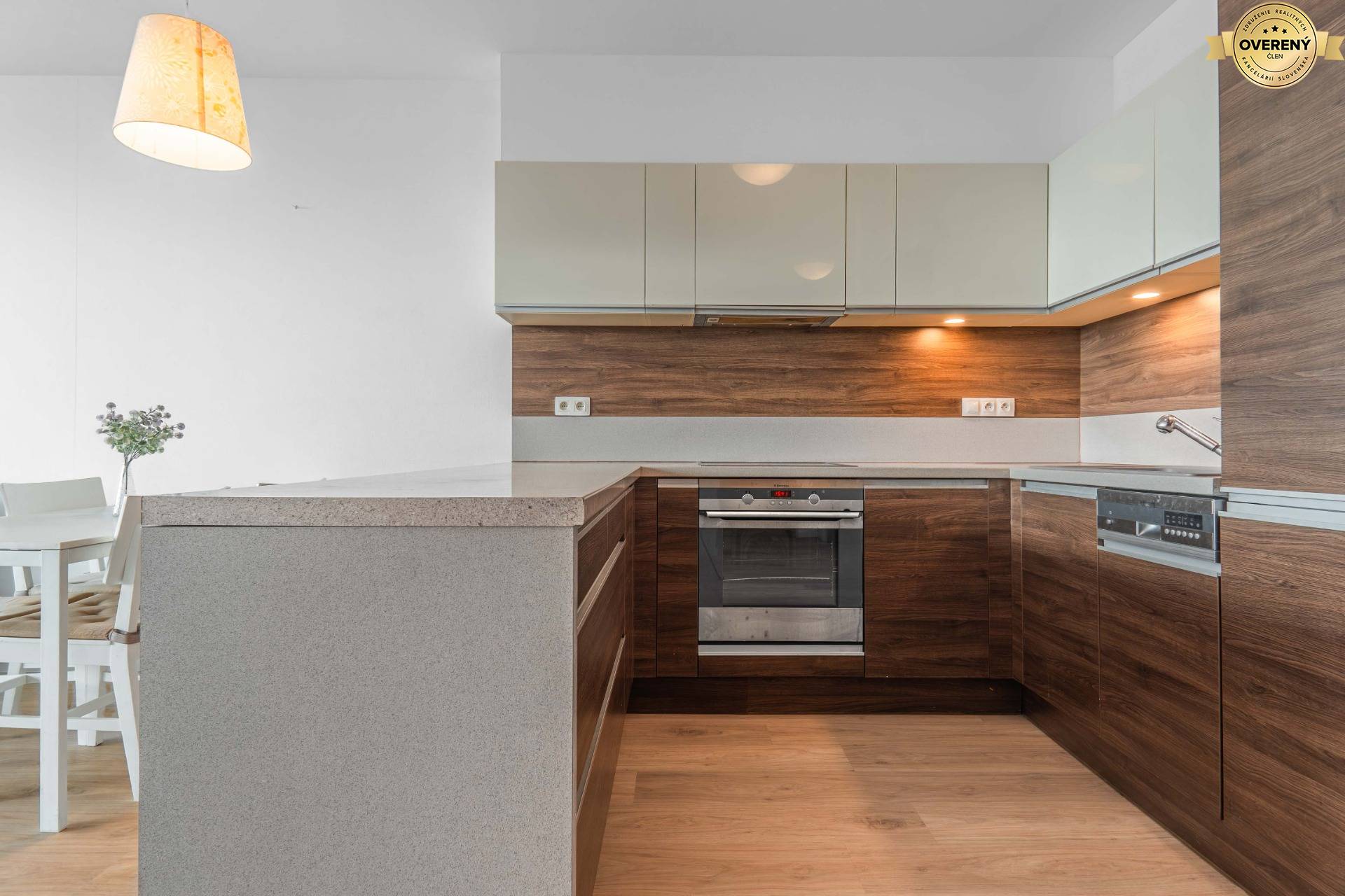 Byt o výmere 66,5 m2 vrátane loggie (4.6 m2) sa nachádza na 18/22 poschodí s orientáciou na JZ. Kuchyňu má moderne prepojenú s obývacou izbou a výhľadom na mesto.