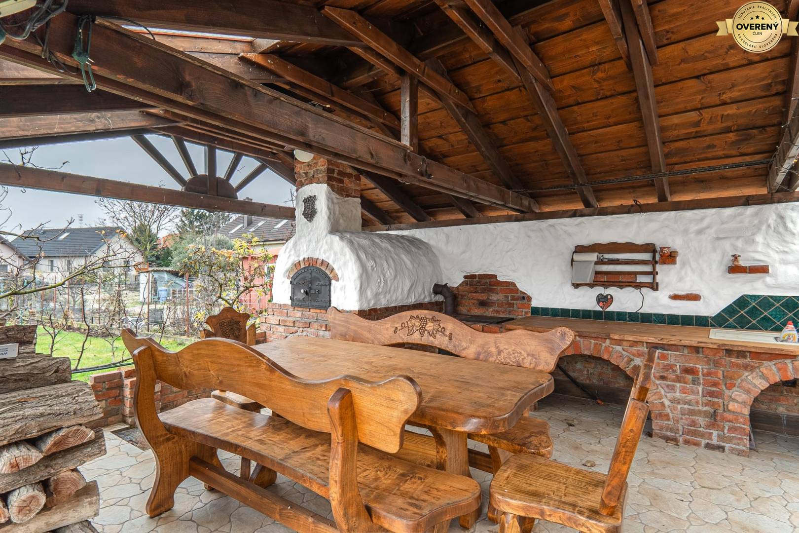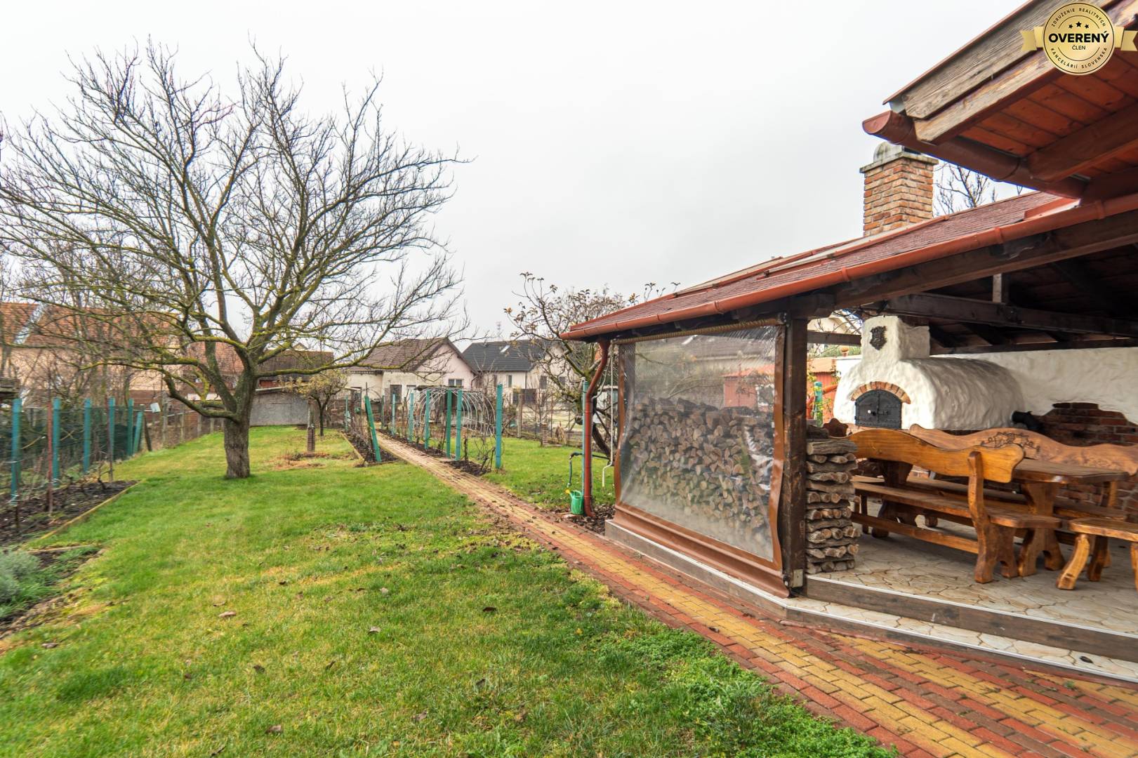 Pozemok o výmere 9 árov má pravidelný tvar a je funkčne rozdelený. Nachádza sa na ňom oddychová časť s automatickým zavlažovaním, letná kuchyňa v tradičnom štýle s autentickou pecou typu „Donga“ a šparheltom, ako aj udržiavaná záhrada s ovocnými stromami a viničom. Súčasťou pozemku sú aj hospodárske stavby, pivnica na uskladnenie úrody a garáž pre jedno vozidlo. Pred domom je možné parkovať až tri automobily. K dispozícii je aj vlastná studňa s pitnou vodou a zavlažovacím systémom.
