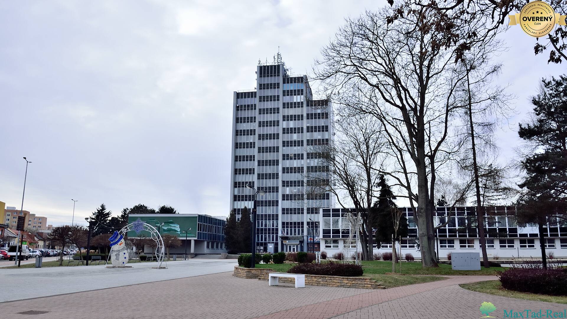 Námestie slobody v Michalovciach spája centrum diania s podmienkami na sústredenú prácu. Kancelárie sú umiestnené v známej výškovej budove – dominante mesta – s priamymi výhľadmi na celé námestie a so severovýchodnou orientáciou, ktorá napomáha príjemnej klíme bez prehrievania. Tiché a profesionálne susedstvo (geodet, advokát) podčiarkuje reprezentatívny charakter adresy.