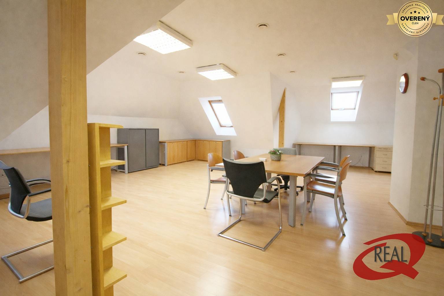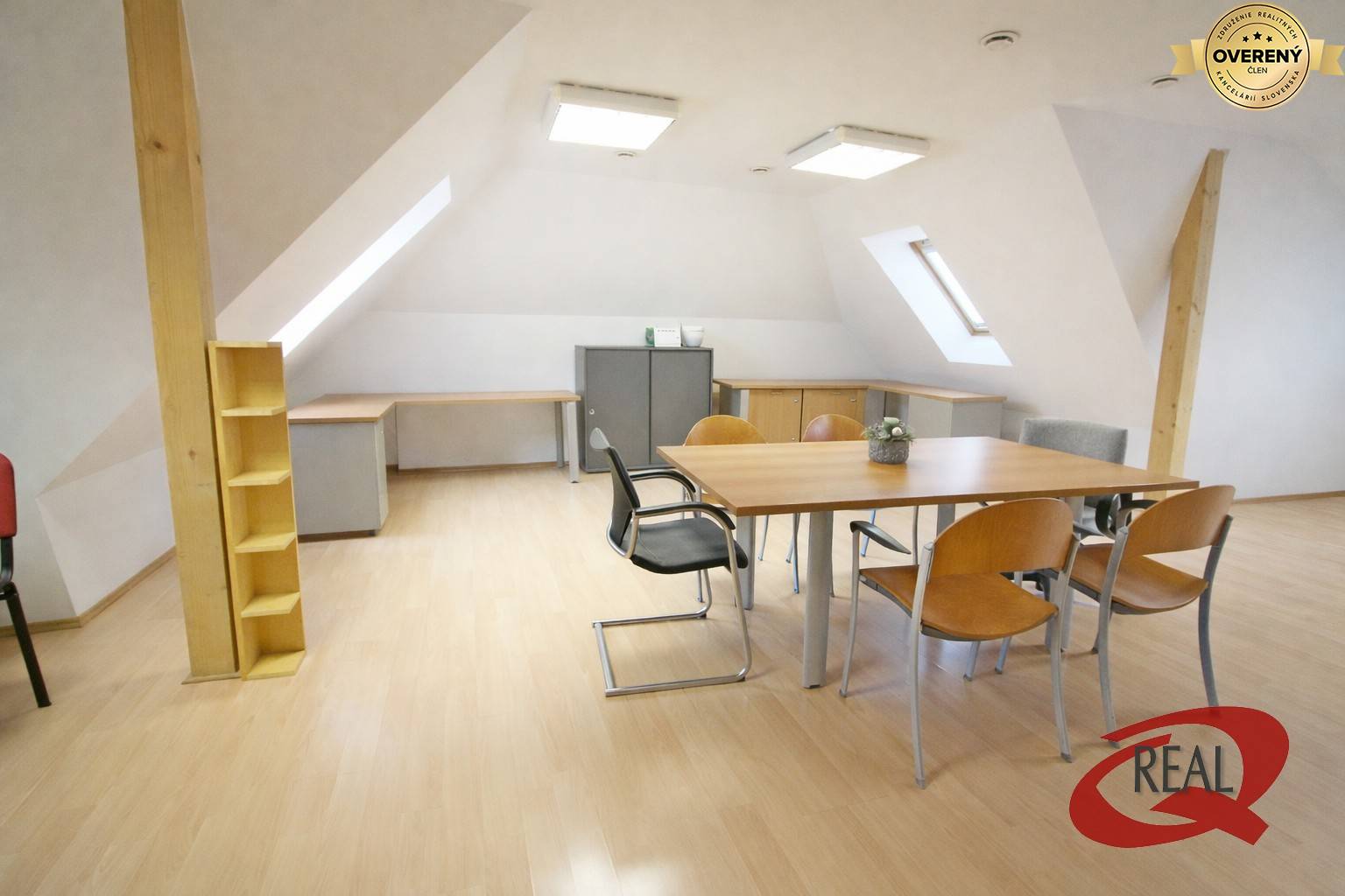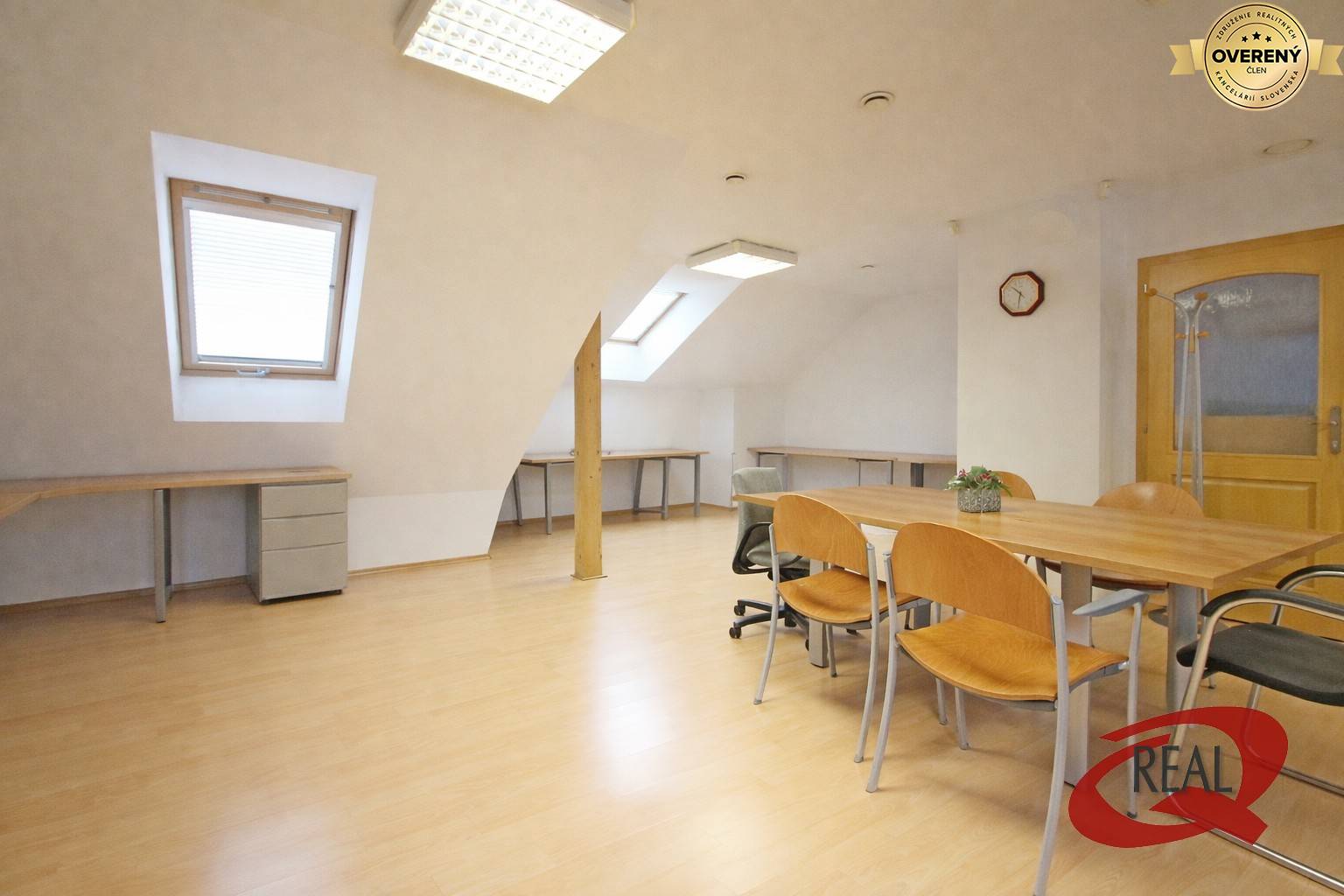 Na poschodí sa nachádzajú len dve samostatné kancelárie, spoločná kúpeľňa s toaletou a sprchovým kútom.