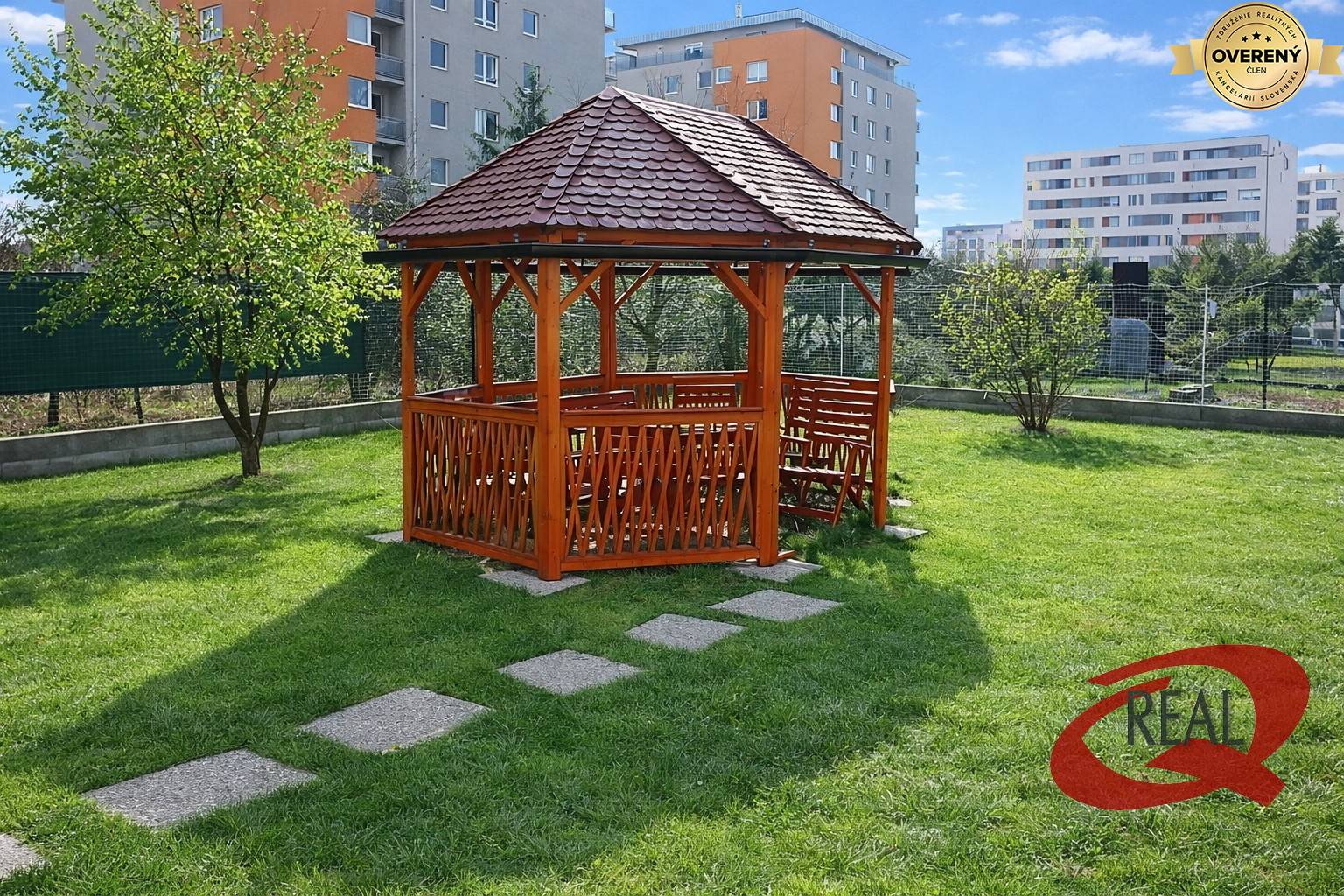 Na pozemku stojí záhradný altánok, ktorý nájomcovia môžu využívať.