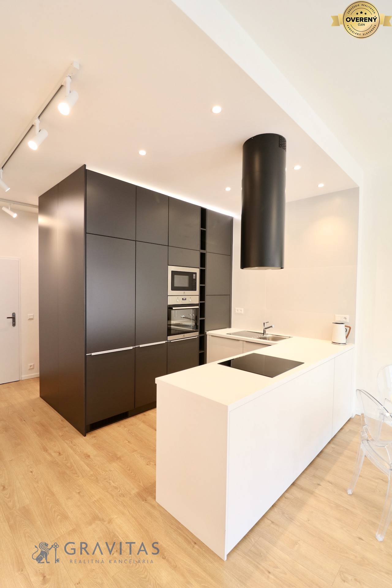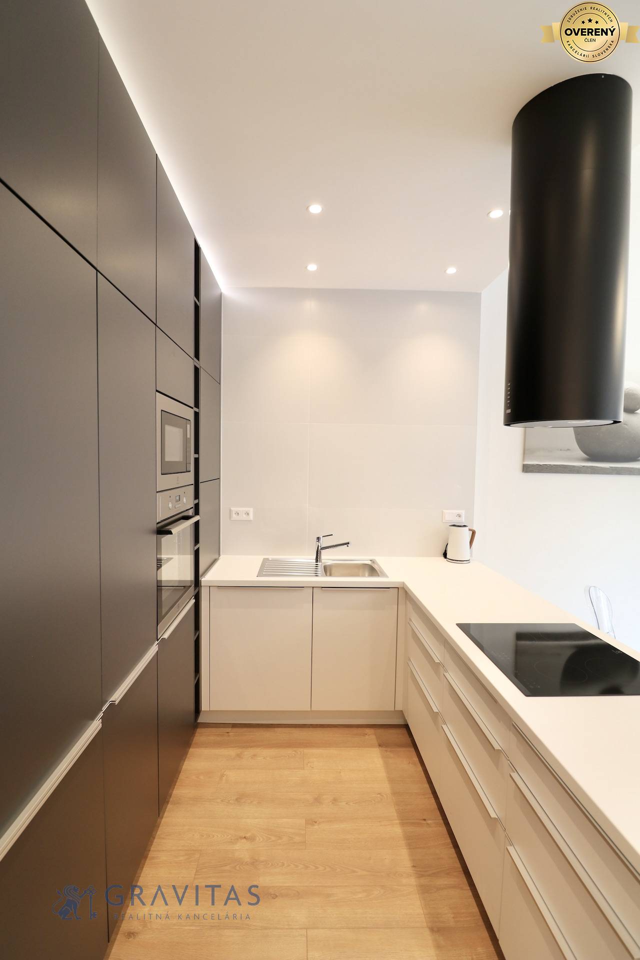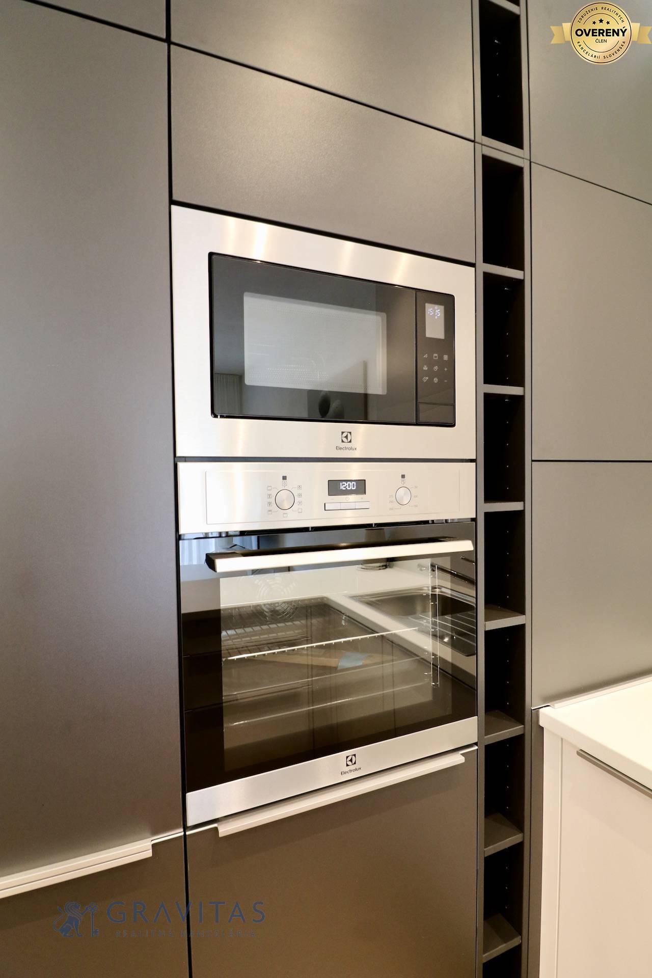 - Kompletne vybavená kuchynská linka: umývačka riadu, elektrická rúra, indukčná varná doska, mikrovlnná rúra, ostrovčekový digestor