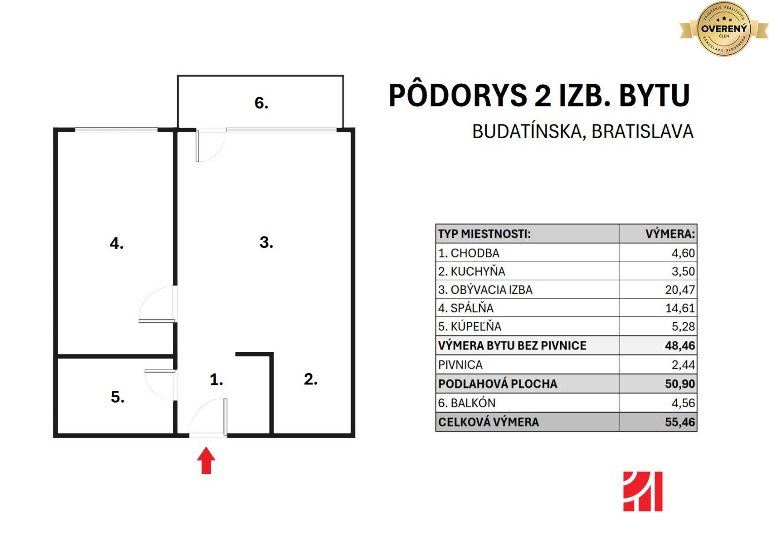 | Celková rozloha | 55.46 m² |