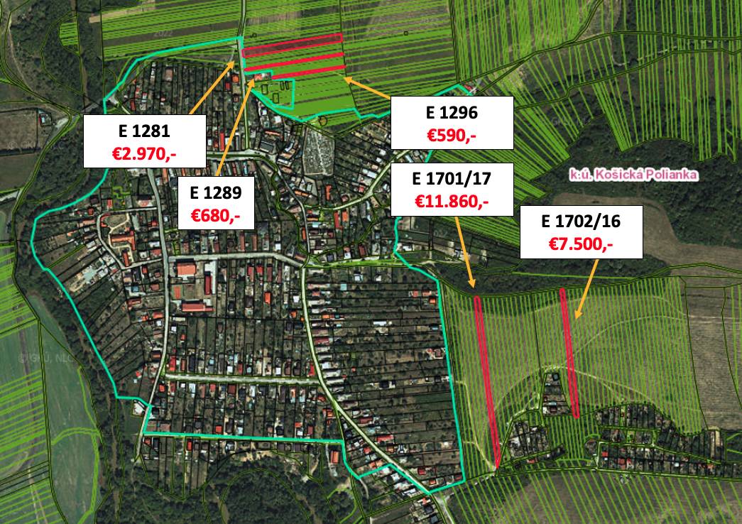 - Nehnuteľnosti sú evidované na listoch vlastníctva 805, 1076, 1520 a 1522 pre katastrálne územie Košická Polianka, obec Košická Polianka, okres Košice - okolie.