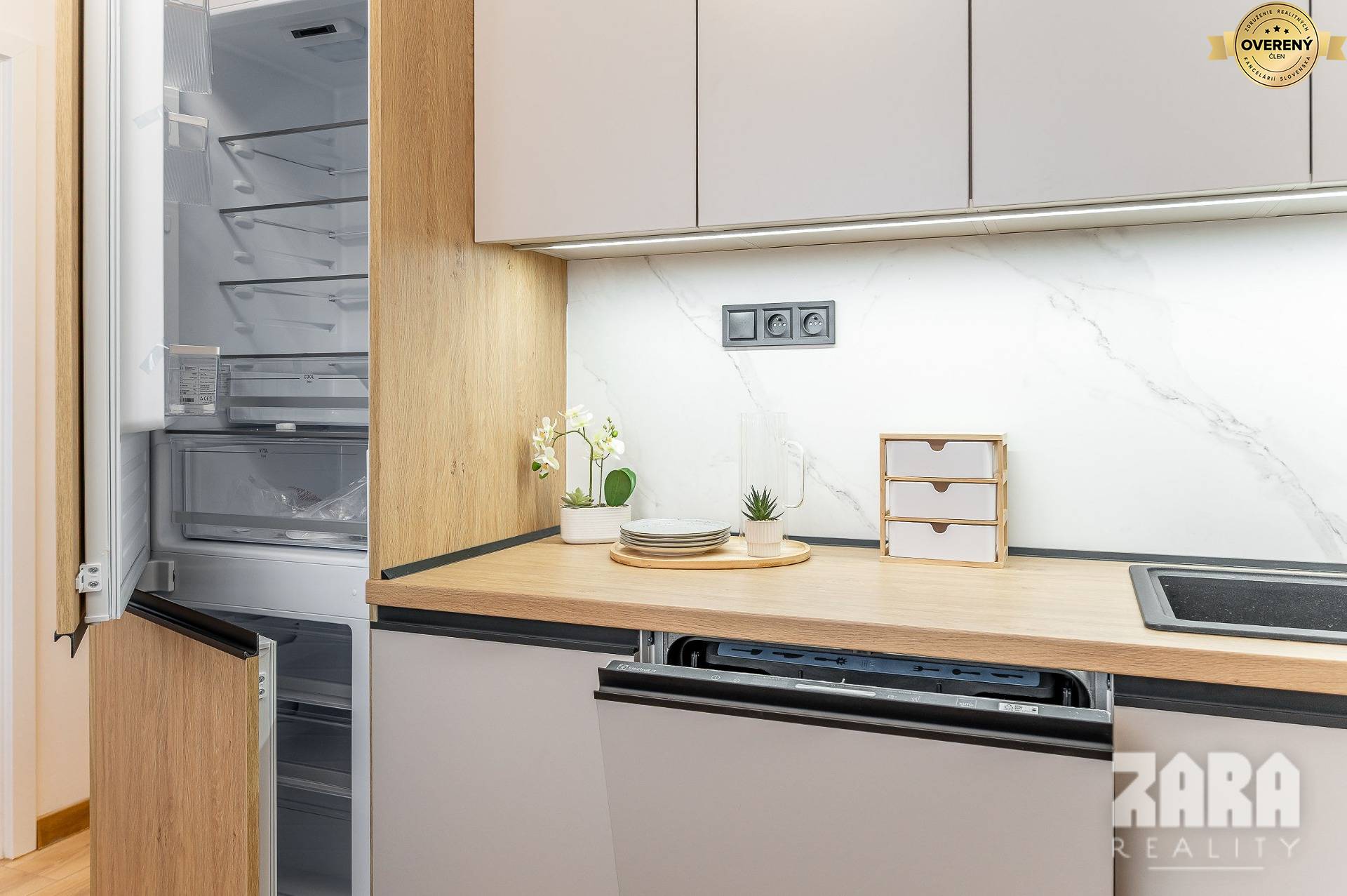 Nadčasovo zmodernizovaný, esteticky farebne zladený byt.