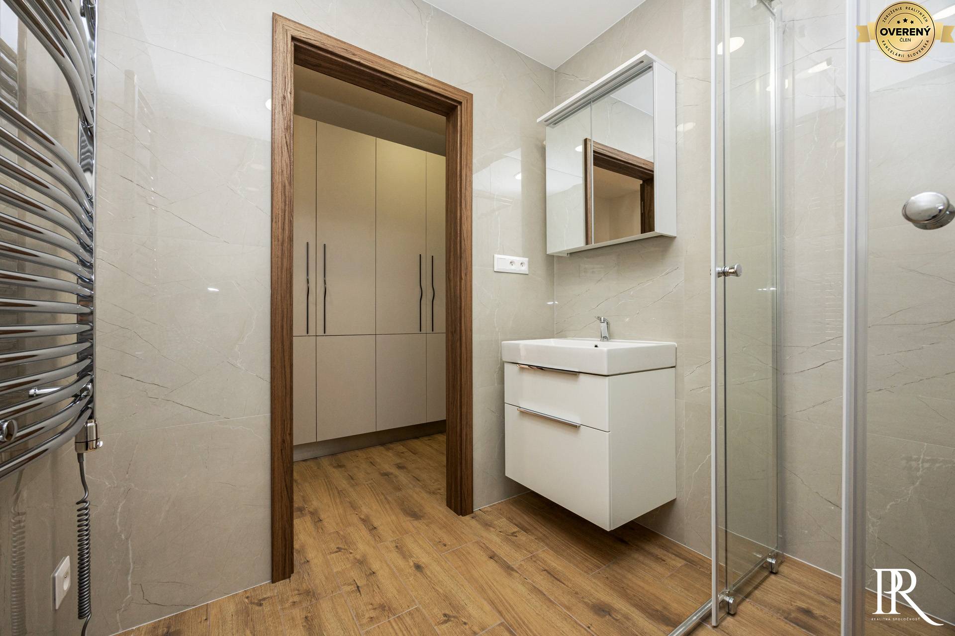 - murované jadro bytu bolo zväčšené-rozšírené, osadila sa nová sanita, položil sa nový keramický obklad na stenách a samozrejme nová dlažba, v kúpeľni je pripravená kompletná inštalačná príprava na práčku aj sušičku.