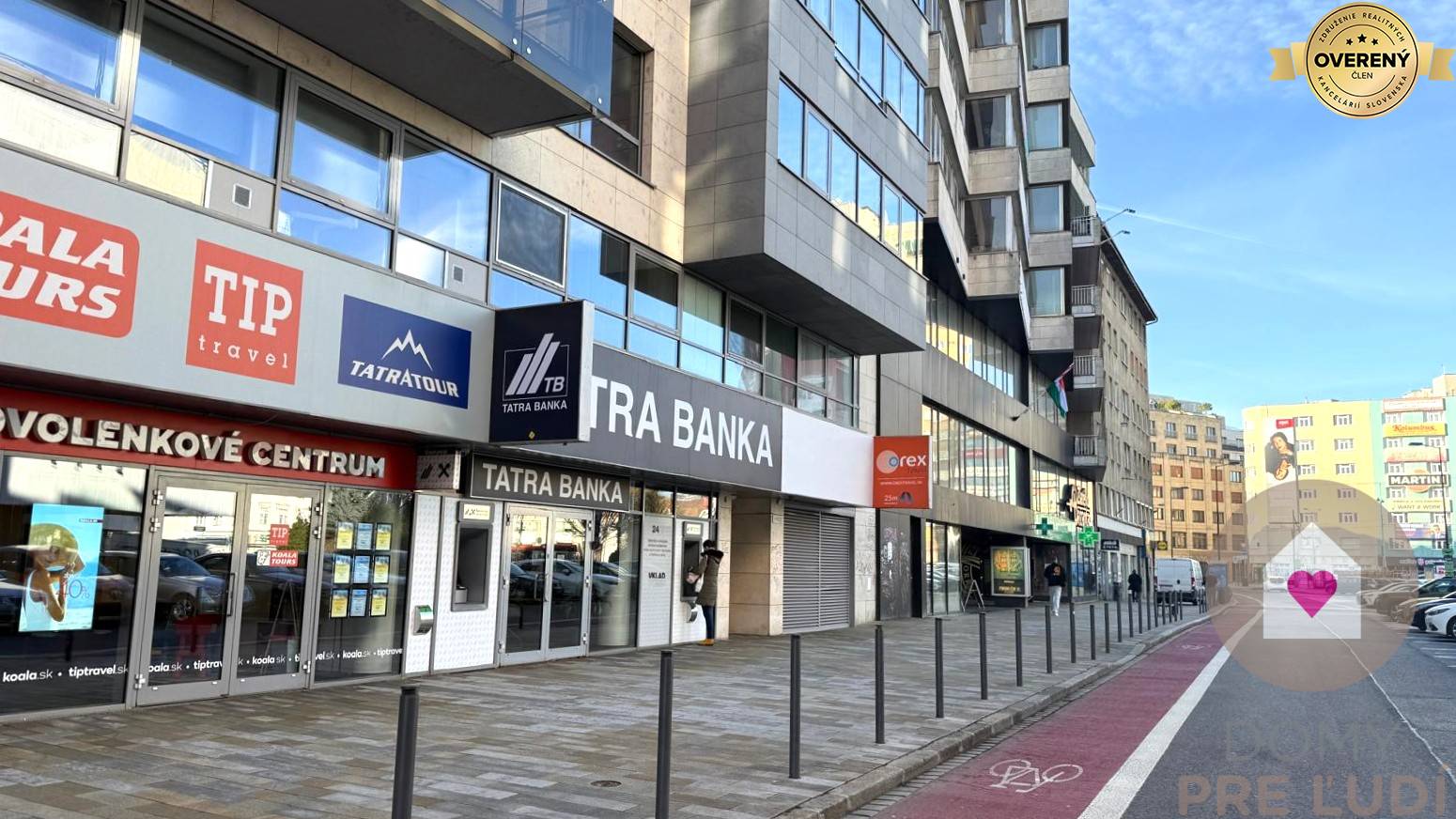 Ulica Dunajská v srdci bratislavského Starého Mesta ponúka mestské prostredie s hustou sieťou služieb a administratívnymi adresami. Keďže ide o absolútne centrum, každodennú agendu vybavíte na pár krokov: pobočka Tatra banky je vo vzdialenosti 7 m a zásielky odosielate v pobočke Nova Post vo vzdialenosti 42 m. Poloha je vhodná pre firmy, ktoré potrebujú byť nablízku klientom aj úradom, s jednoduchým napojením na dianie v meste.